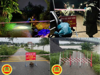 Lực lượng Công an xã phối hợp Ban Chỉ huy Quân sự xã và lực lượng tham gia bảo vệ an ninh, trật tự (ANTT) ở cơ sở tiến hành khảo sát, rà soát các khu vực có nguy cơ ngập sâu, sạt lở, chia cắt; tổ chức rào chắn, cắm biển cảnh báo, bố trí lực lượng chốt chặn, hướng dẫn người dân không di chuyển vào vùng nguy hiểm.