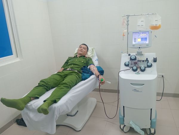 Cán bộ, chiến sĩ Văn phòng Cơ quan CSĐT Công an tỉnh Quảng Ngãi kịp thời hiến tiểu cầu cứu sống bệnh nhi