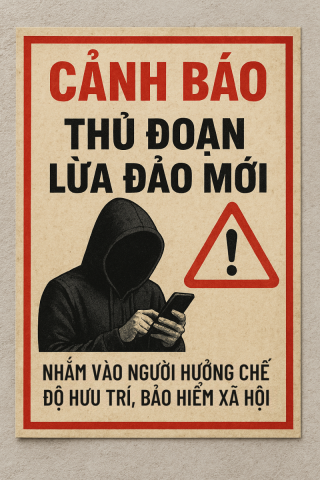 Gần đây xuất hiện nhiều chiêu trò lừa đảo tinh vi nhắm vào người hưởng lương hưu, trợ cấp và các chính sách bảo hiểm xã hội: giả danh cán bộ, gọi điện hoặc kết bạn Zalo/FB yêu cầu “cập nhật” thông tin, mồi chài nhận “hỗ trợ” hoặc yêu cầu cung cấp mã OTP, số thẻ/tài khoản để chiếm đoạt tiền. Người hưởng chế độ và gia đình cần cảnh giác tuyệt đối, không cung cấp mã OTP, thông tin thẻ hay chuyển tiền theo yêu cầu người lạ; khi nghi ngờ phải liên hệ cơ quan chính thức để xác minh.