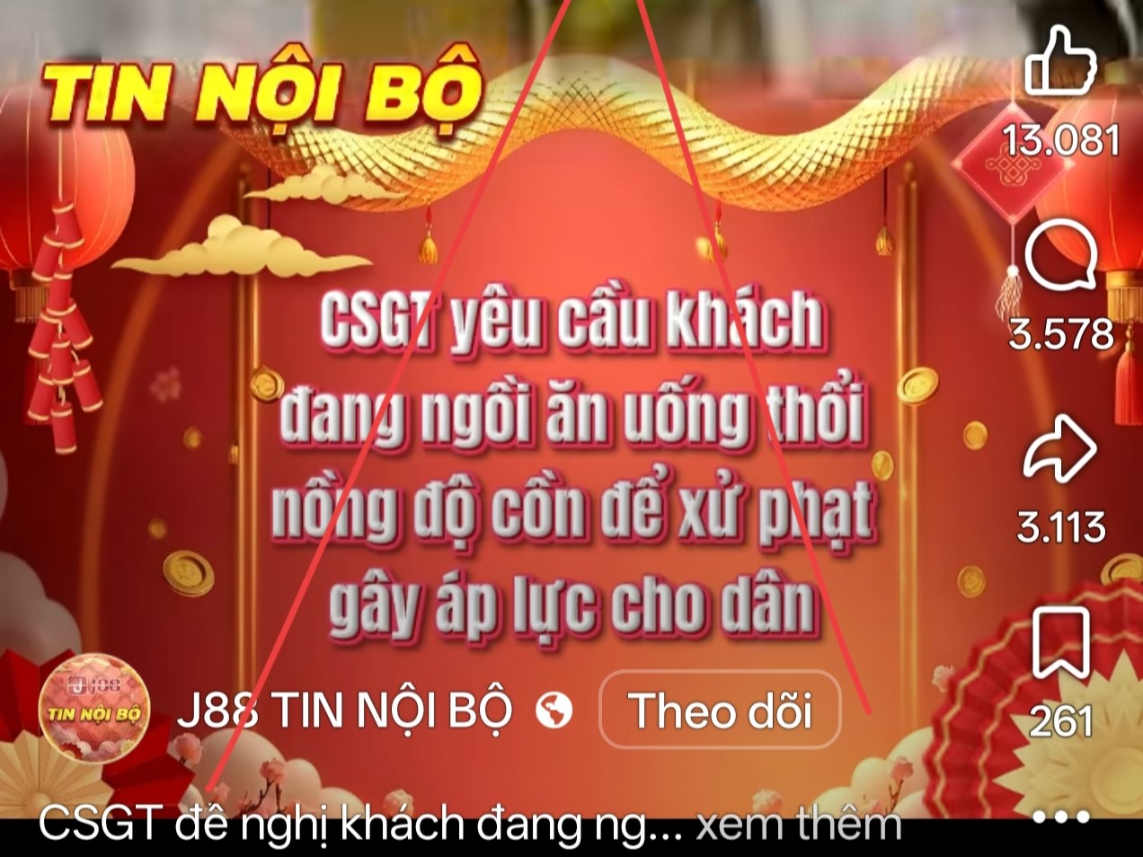 Trong những ngày qua, một số trang mạng xã hội không chính thống, điển hình như trang có tên “J88 TIN NỘI BỘ”, đã đăng tải hình ảnh, video với nội dung quy chụp rằng lực lượng CSGT vào quán ăn, quán nhậu để kiểm tra nồng độ cồn đối với người dân đang ngồi ăn uống. Những thông tin này nhanh chóng lan truyền, thu hút sự chú ý của cộng đồng mạng, gây tâm lý hoang mang và bức xúc.