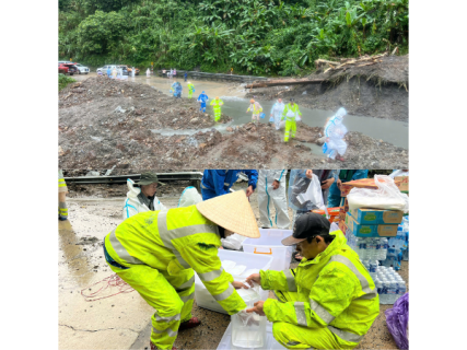 Tại điểm phong tỏa đường, một số mạnh thường quân và lực lượng Cảnh sát giao thông đã gùi cơm vượt đèo trong cảnh đường trơn trượt, mưa nặng hạt đến vùng sạt lở. Khi đến nơi, hàng trăm người dân đang mệt lả, đói sau một đêm ngủ giữa đường rừng; lực lượng Cảnh sát giao thông đã kịp thời tiếp tế lương thực, nước uống.