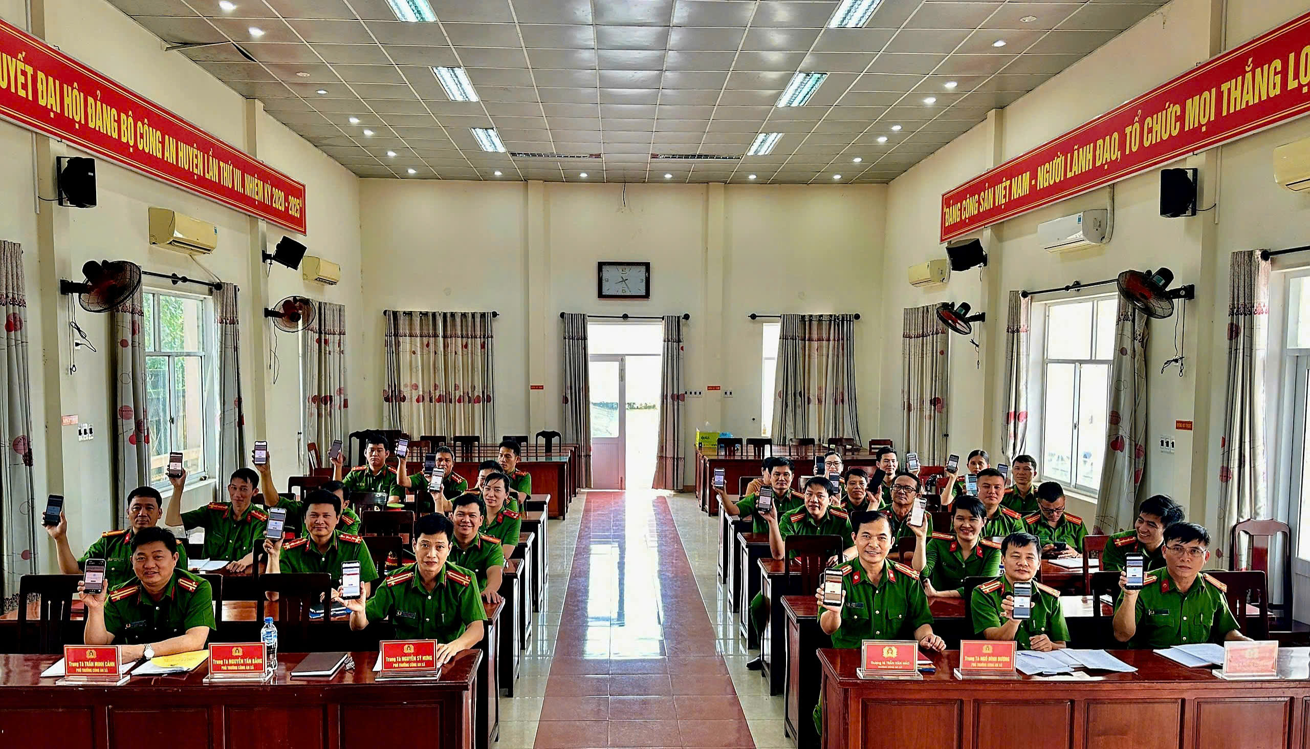 Chi bộ Công an xã Nghĩa Hành góp ý văn kiện Đại hội XIV của Đảng qua ứng dụng VNeID