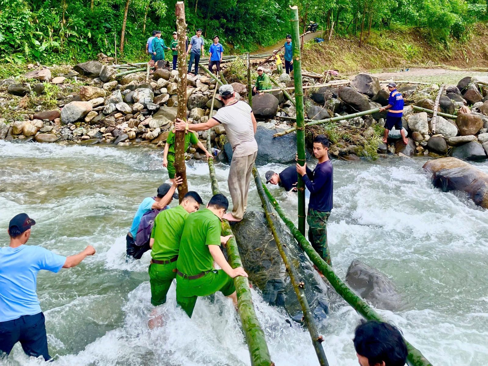 Chi đoàn Công an xã Ba Xa hỗ trợ Nhân dân khắc phục cầu tre sau mưa lũ
