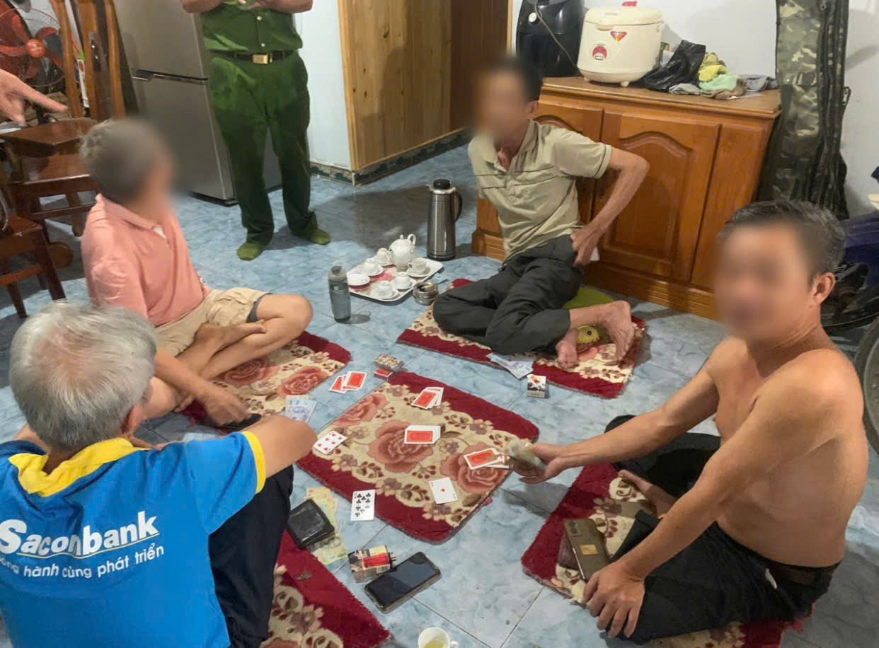 Các đối tượng bị bắt gồm: H.V.T (SN 1970), P.V.N (SN 1963), N.C.Q (SN 1960) và Đ.Đ.H (SN 1970). Trên chiếu bạc, lực lượng Công an thu giữ 04 bộ bài Tây loại 52 lá và 15.340.000 đồng tiền mặt.