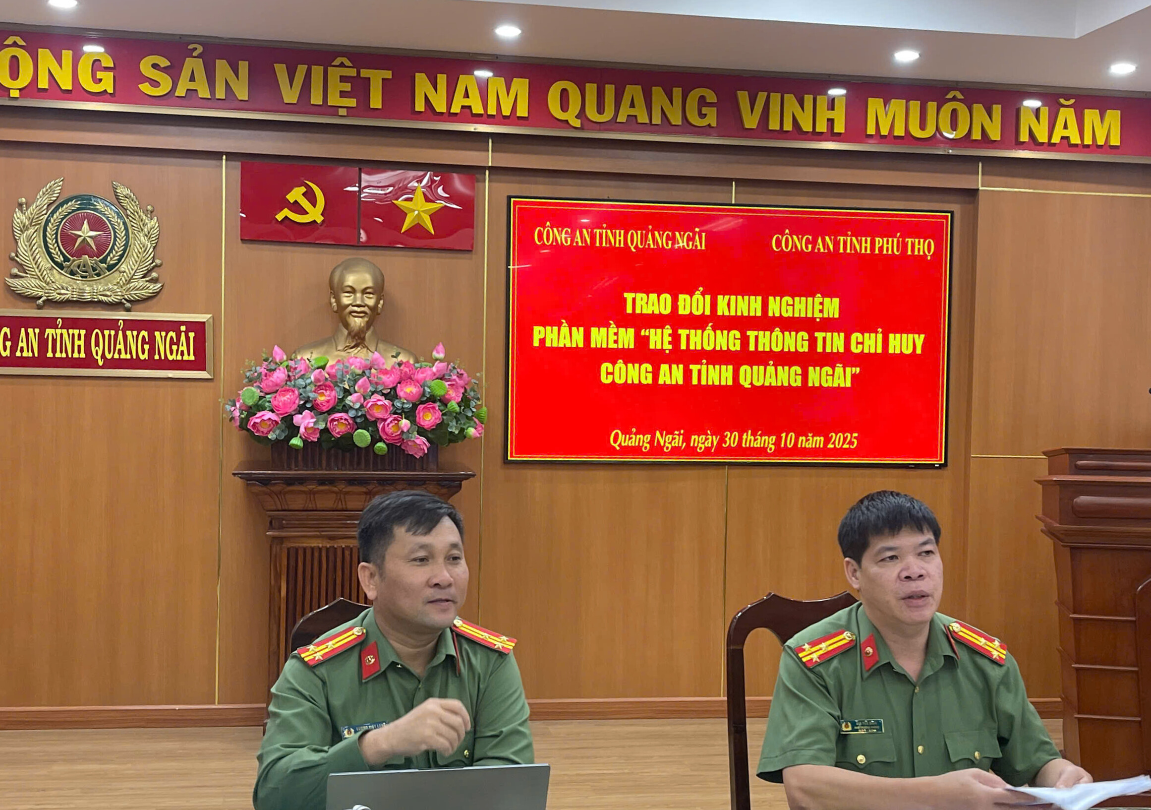 Công an tỉnh Phú Thọ trao đổi kinh nghiệm xây dựng triển khai phần mềm “Hệ thống thông tin chỉ huy” tại Công an tỉnh Quảng Ngãi