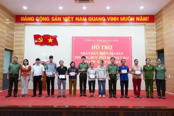 Ngay sau khi lốc xoáy gây thiệt hại nghiêm trọng tại xã Nguyễn Nghiêm; lãnh đạo Công an tỉnh Quảng Ngãi đã trực tiếp đến hiện trường nắm tình hình, thăm hỏi, động viên và trao hơn 100 triệu đồng hỗ trợ cho các hộ dân bị ảnh hưởng, góp phần giúp người dân sớm ổn định cuộc sống.