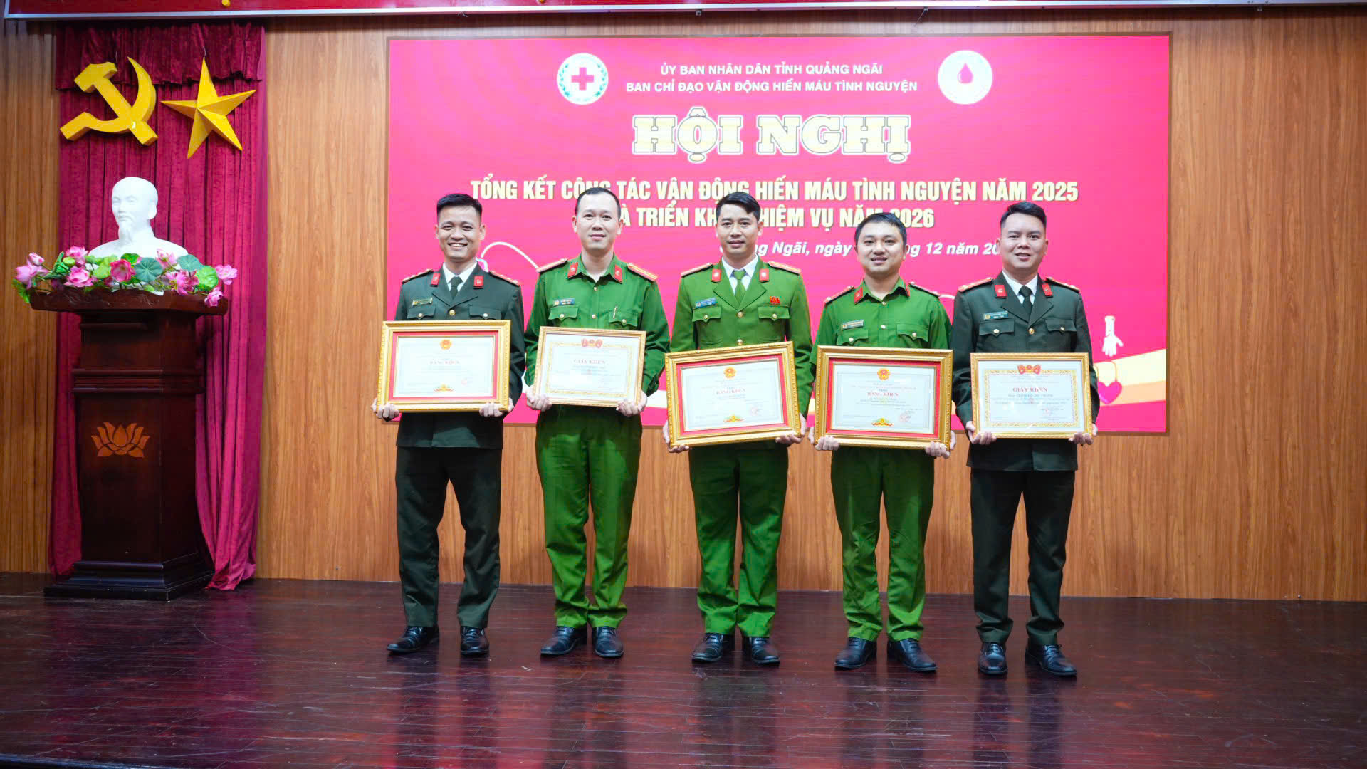 Tại Hội nghị, Công an tỉnh Quảng Ngãi vinh dự có 01 tập thể và 02 cá nhân được Chủ tịch UBND tỉnh tặng Bằng khen; 02 cá nhân được Ban Chỉ đạo vận động hiến máu tình nguyện tỉnh tặng Giấy khen vì có thành tích tiêu biểu trong phong trào hiến máu tình nguyện năm 2025. Đây là sự ghi nhận xứng đáng cho những đóng góp tích cực, bền bỉ và đầy trách nhiệm của lực lượng Công an tỉnh trong công tác an sinh xã hội.