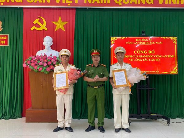 Tại buổi lễ, thừa lệnh của Giám đốc Công an tỉnh, đồng chí Thượng tá Nguyễn Văn Hoàng - Phó Trưởng phòng Tổ chức cán bộ đã công bố các quyết định của Giám đốc Công an tỉnh về điều động đồng chí Trung tá Lê Nhất Duy, Phó Trưởng Công an xã An Phú đến nhận công tác và giữ chức vụ Phó Trưởng Công an phường Trương Quang Trọng; điều động đồng chí Nguyễn Mai Bảo Nghĩa, Phó Trưởng Công an phường Trương Quang Trọng, đến nhận công tác và giữ chức vụ Phó Trưởng Công an xã An Phú.