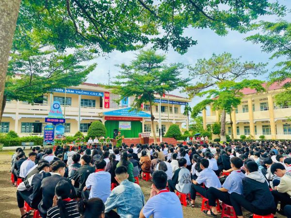 Tại buổi ngoại khóa, cán bộ Công an xã tuyên truyền các nội dung về trật tự an toàn giao thông, phòng chống ma túy, tệ nạn xã hội và bạo lực học đường. Thông qua các tình huống thực tế, học sinh được hướng dẫn kỹ năng nhận biết, phòng tránh và tố giác hành vi vi phạm pháp luật, góp phần xây dựng môi trường học đường an toàn, lành mạnh.