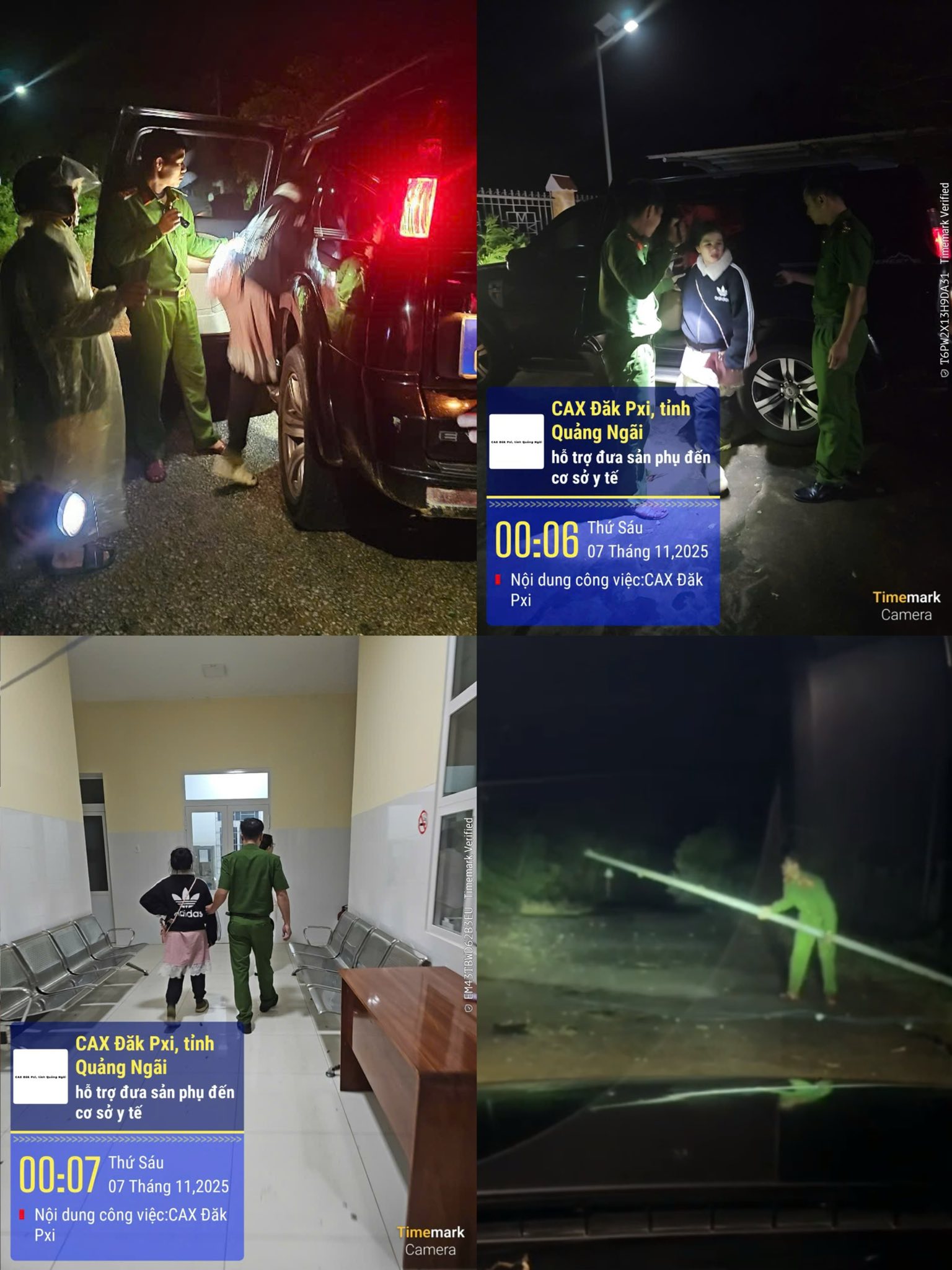 Khoảng 23 giờ 30 phút đêm 06/11/2025, khi cơn bão số 13 đổ bộ, đồng chí Trưởng Công an xã Đăk Pxi nhận được cuộc gọi khẩn cấp từ anh A Xim – Tổ trưởng Tổ an ninh cơ sở thôn Krông Duân – báo tin chị Y Na Tri (26 tuổi) đang mang thai tuần cuối có dấu hiệu chuyển dạ sớm, sức khỏe yếu, cần được đưa đến trung tâm y tế ngay lập tức.