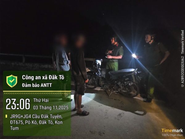 Đêm ngày 03, rạng sáng ngày 04/11/2025, Công an xã Đăk Tô tổ chức tuần tra trên các tuyến đường có khu vực trồng cà phê, nắm tình hình, tuyên truyền, nhắc nhở bà con chủ động bảo vệ nông sản, nâng cao cảnh giác phòng ngừa trộm cắp.