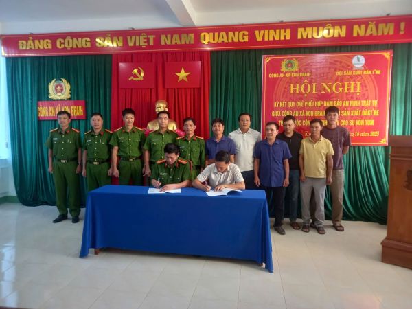 Chiều ngày 15/10/2025, Công an xã Kon Braih, tỉnh Quảng Ngãi phối hợp cùng Đội sản xuất ĐắkT’re - trực thuộc Công ty TNHH MTV cao su Kon Tum tổ chức hội nghị ký kết Quy chế phối hợp đảm bảo an ninh, trật tự.