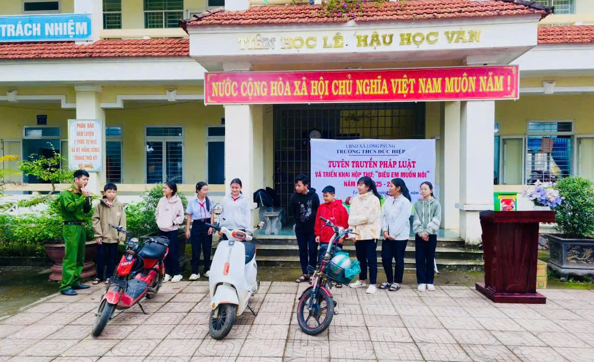 Công an xã Long Phụng tuyên truyền, phổ biến pháp luật tại Trường THCS Đức Hiệp