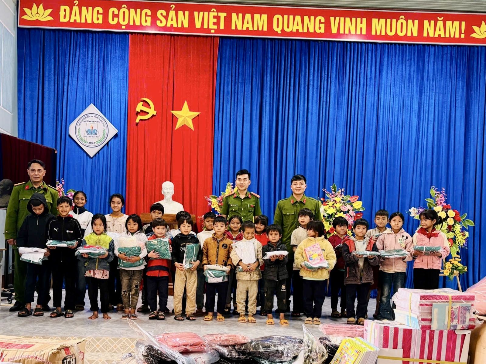 Công an xã Ngọc Linh phối hợp Trường Tiểu học La Phù (Tp. Hà Nội) trao quà cho học sinh vùng cao