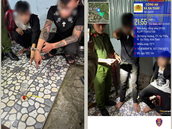 Cụ thể, vào lúc 21 giờ 30 phút ngày 02/10/2025, trong quá trình tuần tra trên tuyến đường Hùng Vương, đoạn qua thôn 2, xã Sa Thầy, tổ công tác Công an xã phát hiện hai thanh niên đi trên xe mô tô mang biển kiểm soát 82AA-22X.XX có biểu hiện nghi vấn nên đã tiến hành dừng phương tiện để kiểm tra. Người điều khiển xe là N.H.T (sinh năm 2006, trú tại thôn 4, xã Sa Thầy), chở theo sau là N.P.N.C (sinh năm 2007, trú tại thôn 1, xã Sa Thầy).
