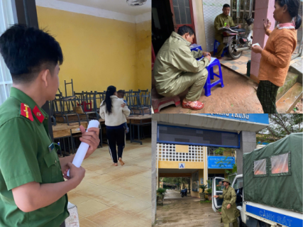Thực hiện nghiêm phương châm “4 tại chỗ”, Công an xã đã phối hợp với Ban Chỉ huy Quân sự xã, lực lượng Dân quân, Đoàn thanh niên và các tổ bảo vệ an ninh trật tự cơ sở tăng cường tuyên truyền, vận động, hướng dẫn Nhân dân di dời đến nơi an toàn trước khi bão đổ bộ. Với tinh thần khẩn trương, trách nhiệm, cán bộ, chiến sĩ Công an xã đã trực tiếp xuống từng hộ dân, hỗ trợ di chuyển tài sản, giúp người già, trẻ nhỏ di dời an toàn, đồng thời hướng dẫn bà con chằng chống nhà cửa, che chắn chuồng trại, bảo vệ gia súc, gia cầm và vật dụng sinh hoạt.