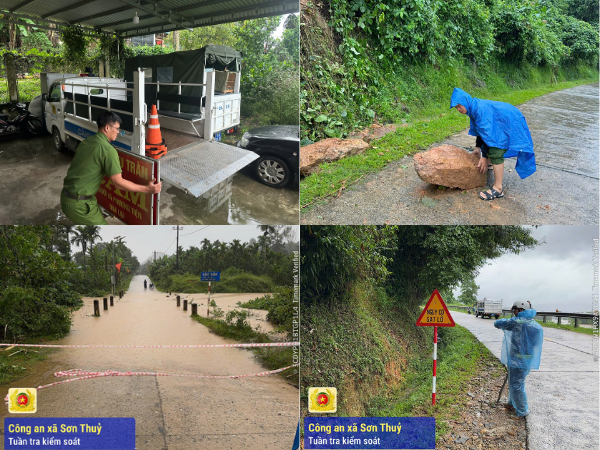 Những ngày qua, do ảnh hưởng của thời tiết cực đoan, trên địa bàn xã Sơn Thủy liên tục xảy ra mưa lớn kéo dài, nhiều tuyến đường xuất hiện ngập cục bộ, nước chảy xiết, tiềm ẩn nguy cơ mất an toàn giao thông và sạt lở đất. Trước diễn biến đó, Công an xã Sơn Thủy đã nhanh chóng chủ động xây dựng phương án, triển khai lực lượng tuần tra, chốt chặn tại các điểm ngập sâu, khu vực cầu tràn, tuyến đường có nguy cơ sạt lở.