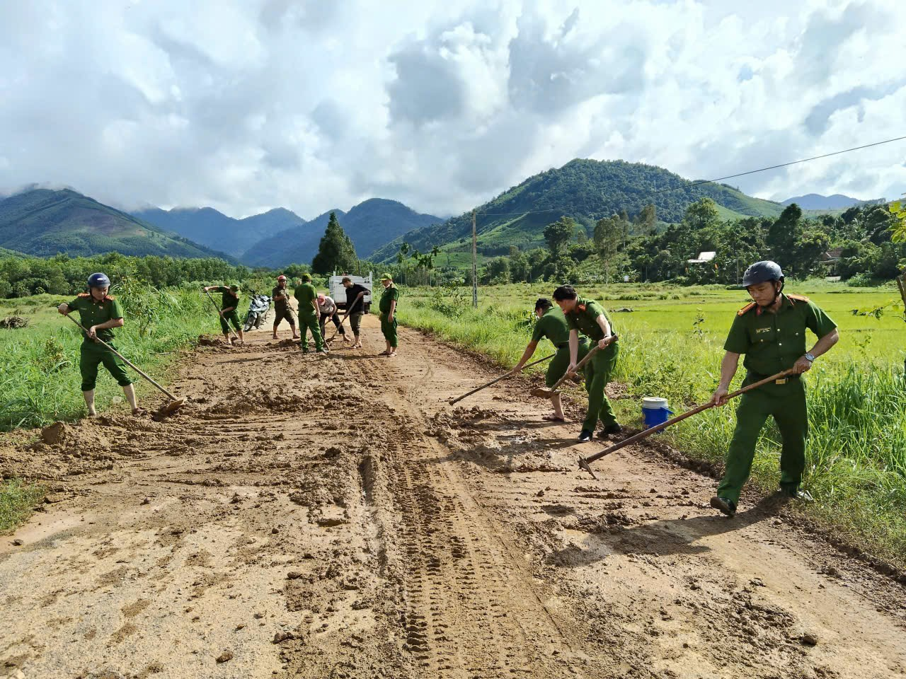 Ngay khi nhận được tin báo, Công an xã Trà Giang đã khẩn trương có mặt tại hiện trường, phối hợp cùng chính quyền địa phương và lực lượng an ninh cơ sở tổ chức dọn dẹp đất đá, khơi thông dòng chảy, tạo lối đi an toàn, giúp người dân và phương tiện đi lại thuận tiện, an toàn.