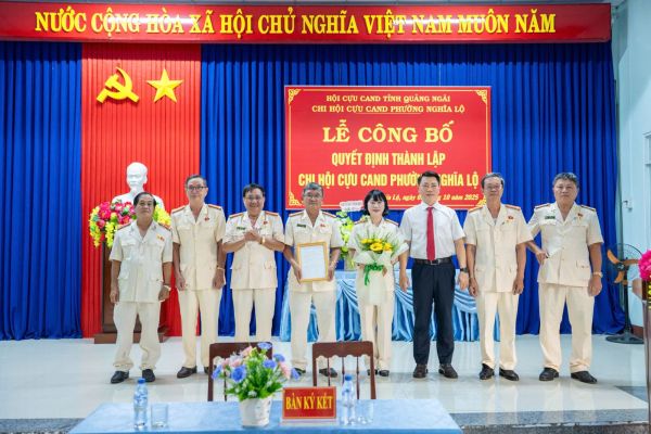 Tại buổi lễ, Ban Tổ chức đã công bố Quyết định của Ban Chấp hành Hội Cựu CAND tỉnh Quảng Ngãi về việc thành lập Chi hội Cựu CAND phường Nghĩa Lộ. Theo đó, đồng chí Thượng tá Trần Kim được tín nhiệm giữ chức vụ Chi hội trưởng.