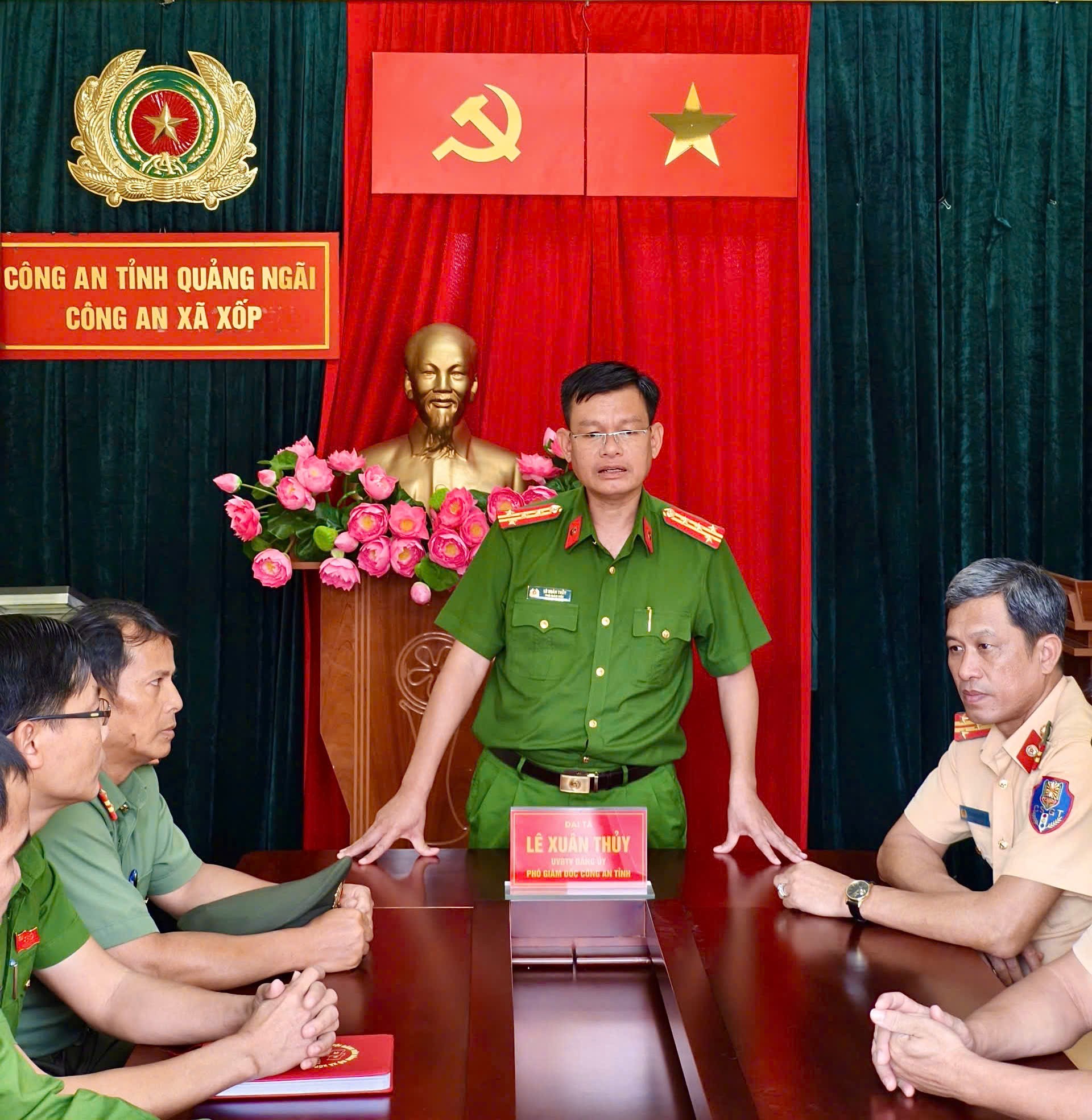 Đại tá Lê Xuân Thủy – Phó Giám đốc Công an tỉnh Quảng Ngãi thăm, động viên Công an xã Xốp trong công tác phòng, chống bão, lũ