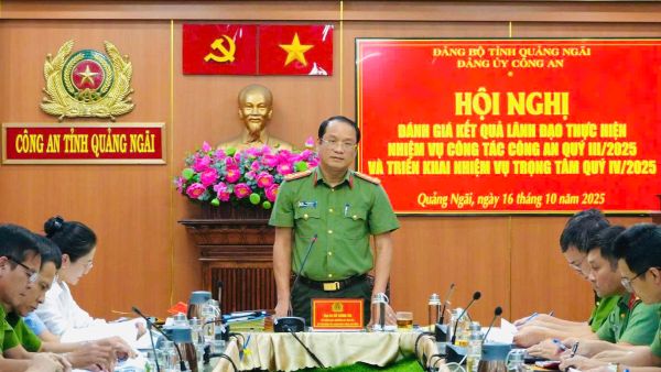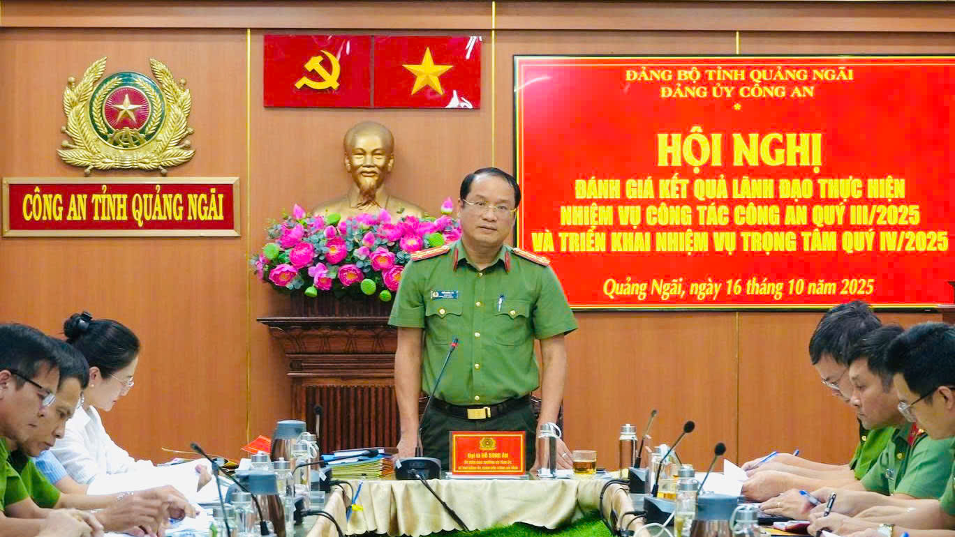 Chiều ngày 16/10/2025, tại Phòng họp số 1 - Công an tỉnh, Đảng ủy Công an tỉnh tổ chức Hội nghị đánh giá kết quả lãnh đạo thực hiện nhiệm vụ công tác công an quý III/2025 và triển khai nhiệm vụ trọng tâm quý IV/2025. Đồng chí Đại tá Hồ Song Ân - Ủy viên Ban Thường vụ Tỉnh ủy, Bí thư Đảng ủy, Giám đốc Công an tỉnh chủ trì Hội nghị. Hội nghị có sự tham dự của đại diện lãnh đạo Ban Tổ chức Tỉnh ủy, Ủy ban Kiểm tra Tỉnh ủy; các đồng chí trong Đảng ủy, Ban Thường vụ Đảng ủy và lãnh đạo Công an tỉnh, Bí thư các chi, đảng bộ cơ sở trực thuộc.