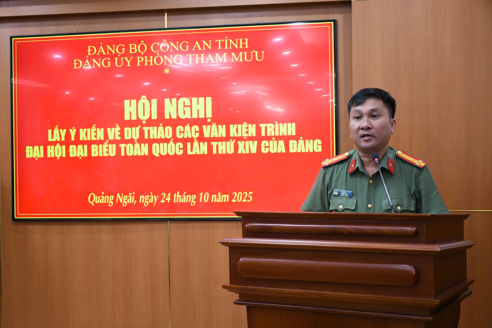 Sáng ngày 24/10/2025, Đảng ủy Phòng Tham mưu tổ chức Hội nghị lấy ý kiến của cán bộ, chiến sĩ về Dự thảo các Văn kiện trình Đại hội Đại biểu toàn quốc lần thứ XIV của Đảng. Hội nghị do đồng chí Thượng tá Lương Việt Long - Bí thư Đảng ủy, Trưởng Phòng Tham mưu chủ trì với sự tham dự của đầy đủ cán bộ, đảng viên của toàn Đảng bộ.