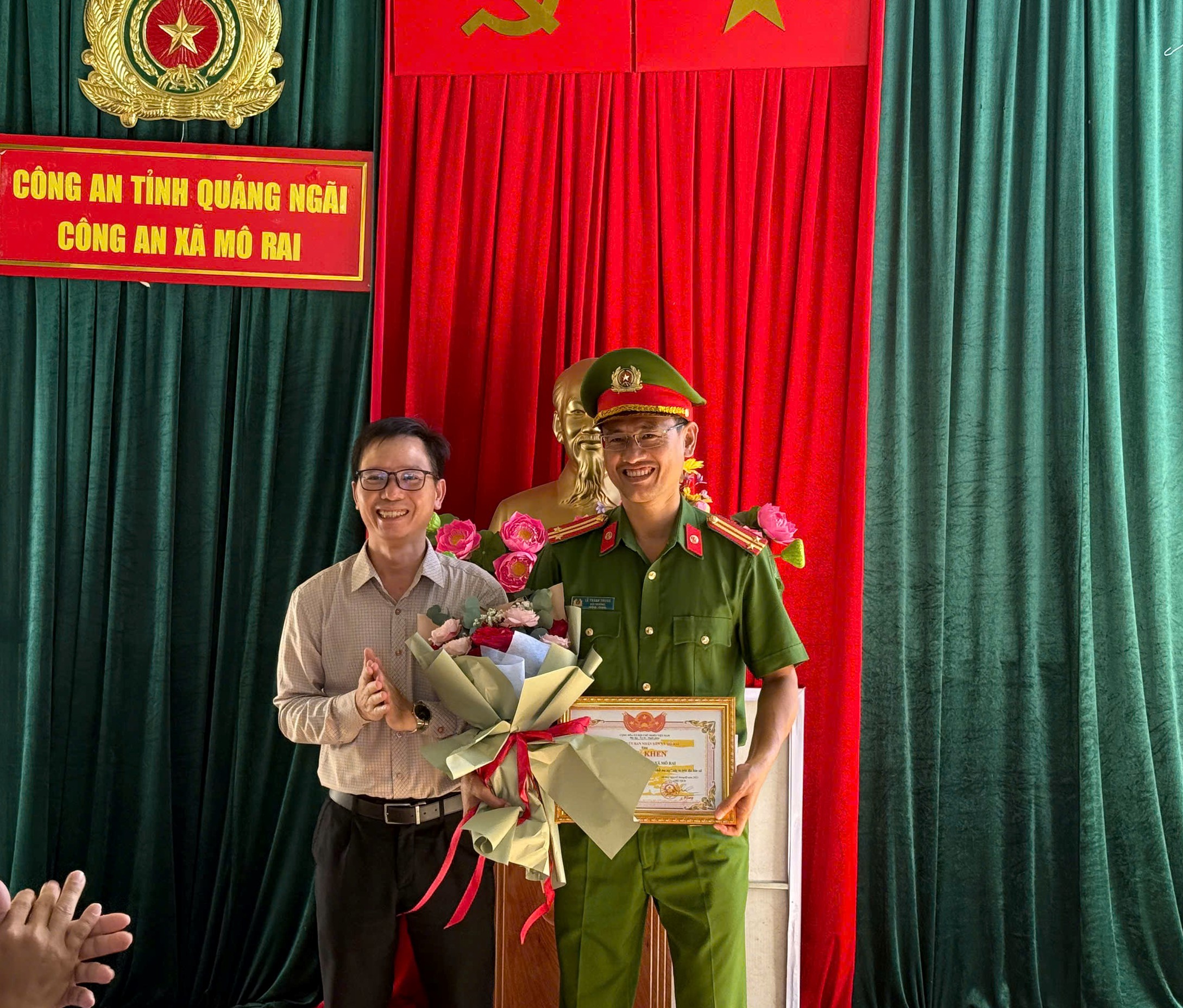 Nhằm kịp thời động viên tinh thần các tập thể, cá nhân đạt thành tích xuất sắc trong công tác đấu tranh phòng, chống tội phạm ma túy trên địa bàn xã, chiều ngày 15/10/2025, đồng chí Trương Công Chính – Bí thư Đảng ủy xã Mô Rai; đồng chí A Plưng – Chủ tịch UBND xã Mô Rai đã biểu dương và tặng giấy khen cho lực lượng Công an xã trong công tác đấu tranh phòng, chống tội phạm về ma túy.