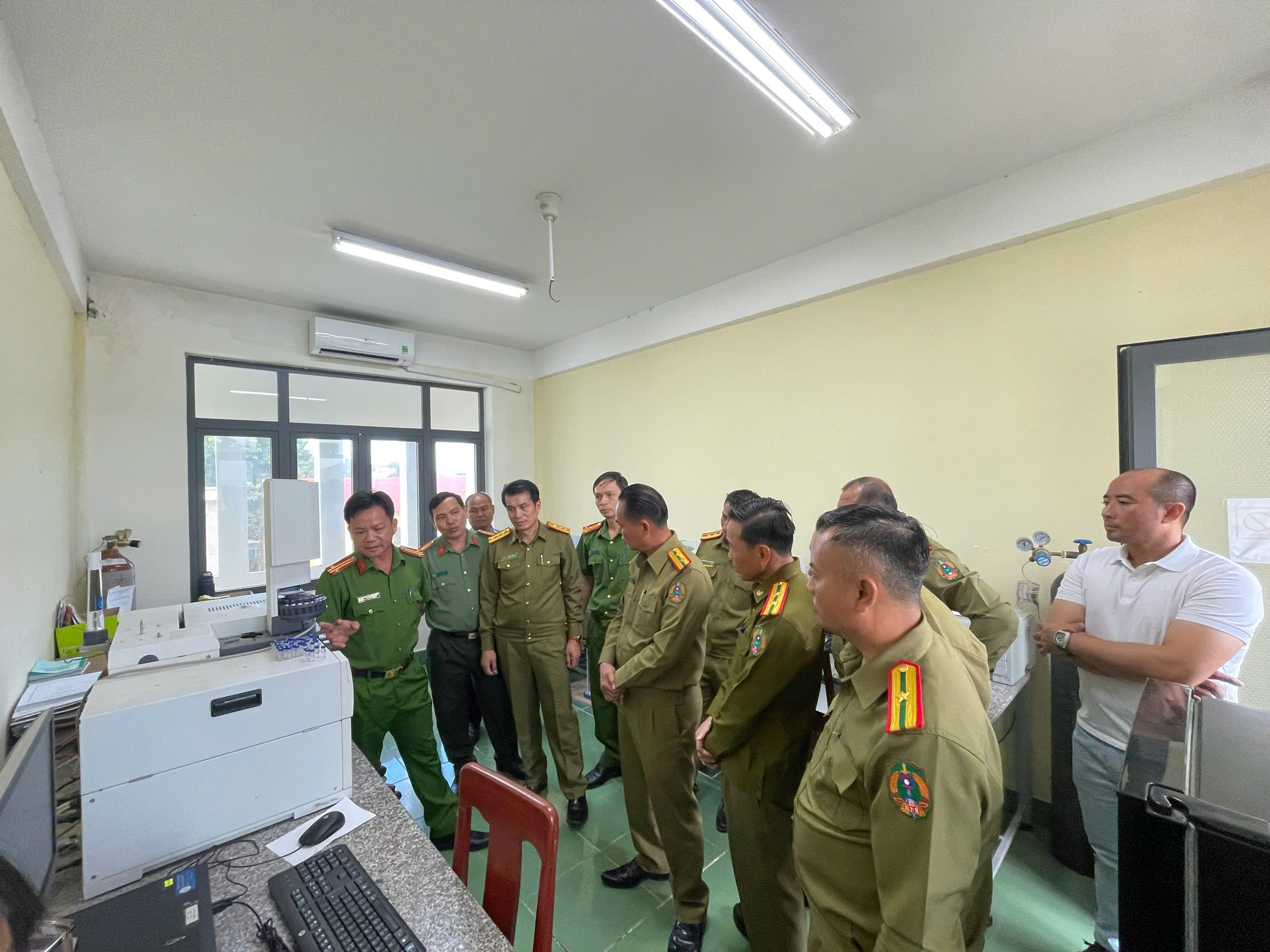 Đoàn công tác Công an tỉnh Attapeu, tham quan mô hình giám định Hóa, Ma túy tại Phòng Kỹ thuật hình sự Công an tỉnh Quảng Ngãi