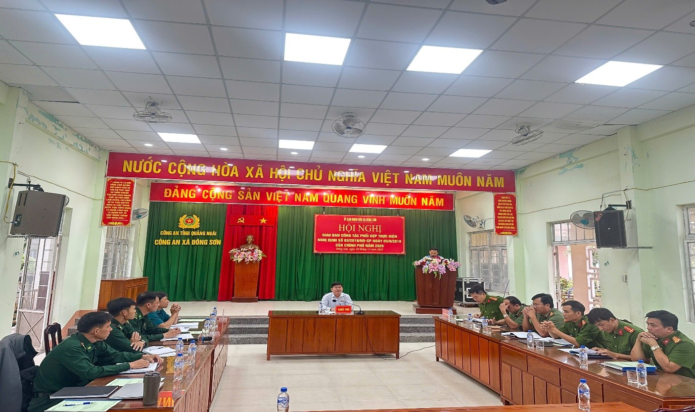 Sáng ngày 30/12/2025, Công an xã Đông Sơn đã tham mưu Ủy ban nhân dân xã tổ chức Hội nghị giao ban thực hiện Nghị định số 03 của Chính phủ năm 2025 và triển khai phương hướng, nhiệm vụ năm 2026 về quy chế phối hợp giữa 03 lực lượng Công an - Quân sự - Biên phòng trong thực hiện nhiệm vụ bảo vệ an ninh quốc gia, bảo đảm trật tự, an toàn xã hội, đấu tranh phòng, chống tội phạm và nhiệm vụ quốc phòng trên địa bàn trong thời gian qua. Dự và chỉ đạo Hội nghị có đồng chí Phan Đình chí - Phó Bí thư Đảng ủy, Chủ tịch UBND xã.