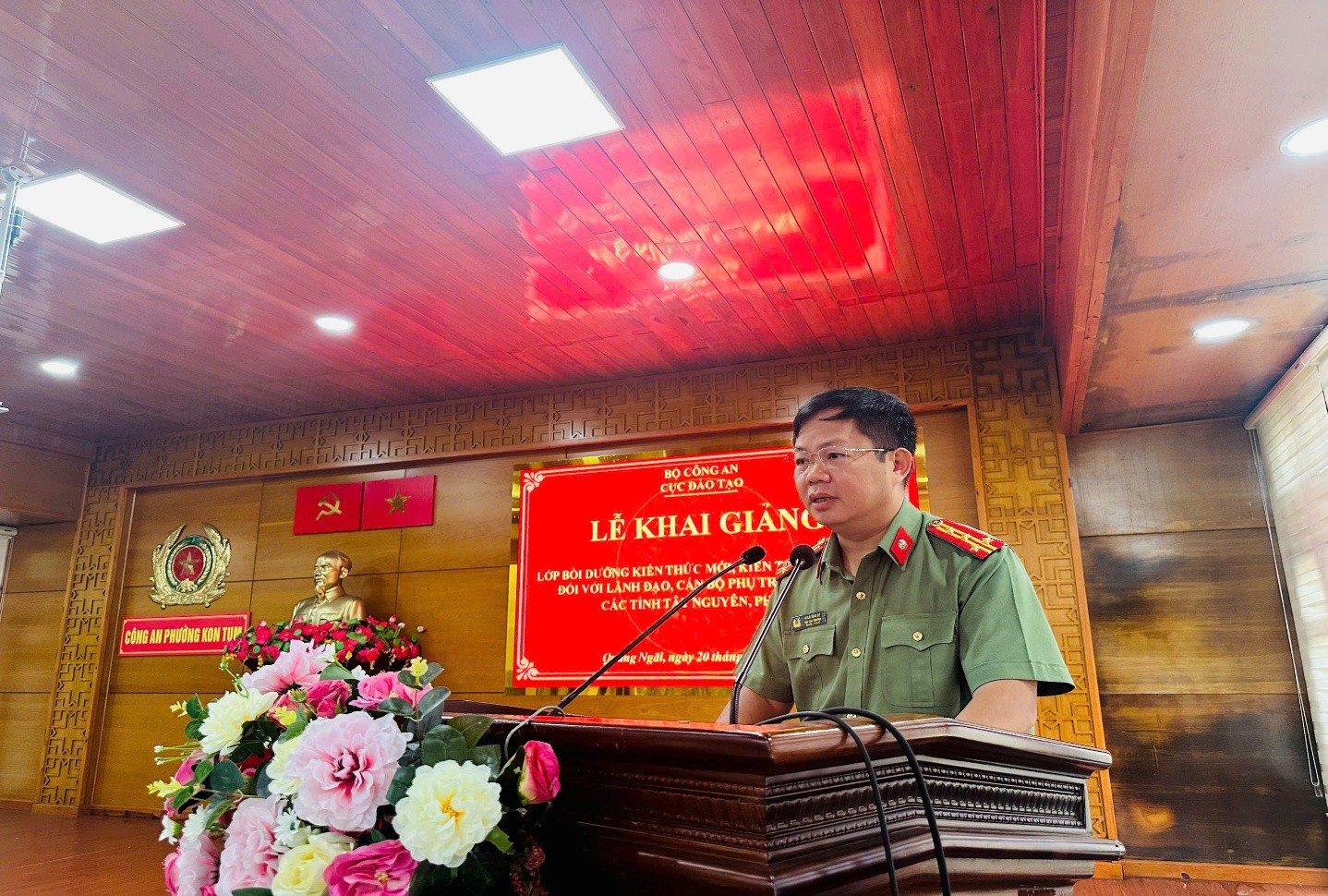 Ngày 20/10/2025, tại Công an phường Kon Tum, tỉnh Quảng Ngãi đã diễn ra Lễ khai giảng Lớp bồi dưỡng kiến thức mới, kiến thức nâng cao đối với lãnh đạo, cán bộ Công an phụ trách địa bàn các tỉnh Tây Nguyên, phụ cận năm 2025 do Cục Đào tạo, Bộ Công an phối hợp với Cục An ninh nội địa, Trường Đại học ANND và Công an tỉnh Quảng Ngãi tổ chức.