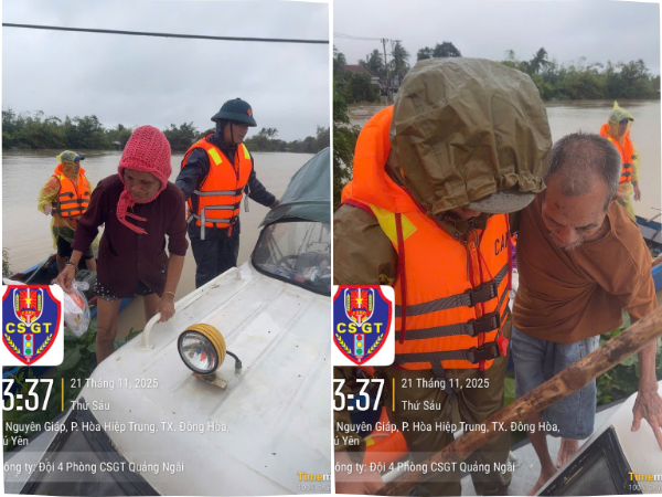 Trước diễn biến mưa lũ phức tạp, nguy hiểm tại tỉnh Đắk Lắk, Công an tỉnh Quảng Ngãi đã khẩn trương điều động 3 Tổ công tác với 37 cán bộ cùng nhiều phương tiện chuyên dụng chi viện. Chỉ sau 1 ngày 1 đêm triển khai nhiệm vụ, lực lượng đã cứu được hàng trăm người dân khỏi vùng cô lập và vận chuyển hàng tấn nhu yếu phẩm đến các khu vực ngập sâu.