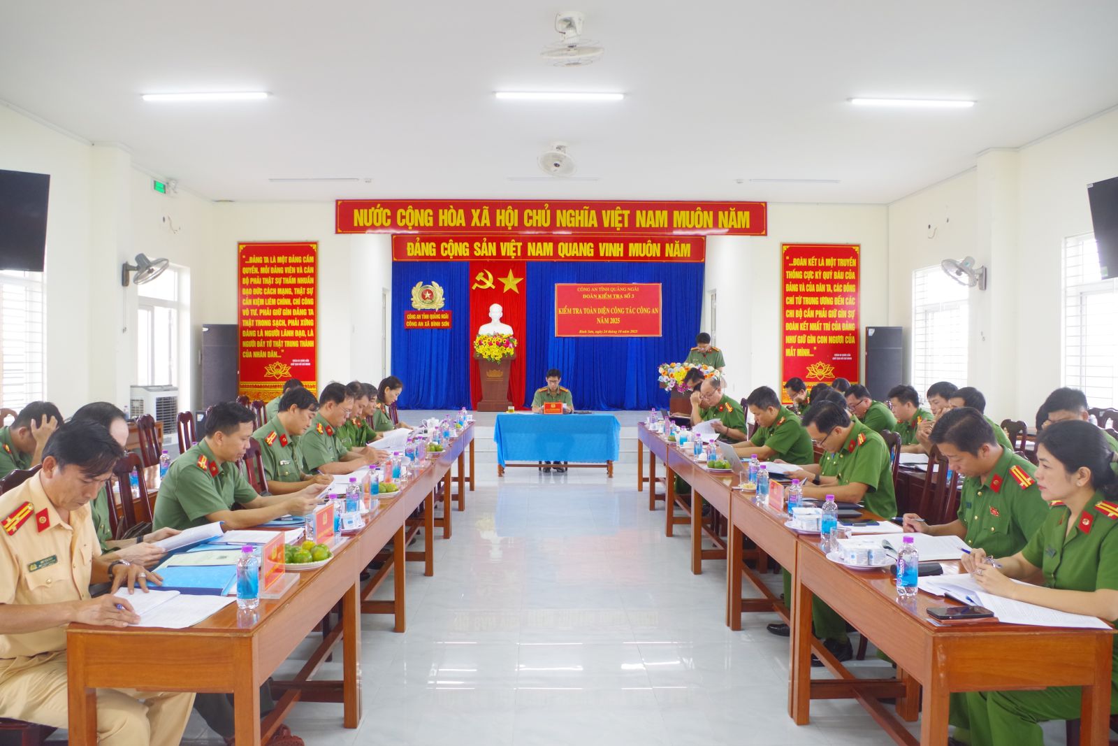 Tại buổi kiểm tra, đại diện Công an các xã đã báo cáo kết quả nổi bật trên các lĩnh vực công tác, nêu rõ những cách làm sáng tạo, mô hình hay, hiệu quả, đồng thời phân tích những khó khăn, bất cập trong quá trình triển khai nhiệm vụ ở cơ sở. Đoàn kiểm tra đã tiến hành đánh giá cụ thể tiến độ và kết quả thực hiện từng chỉ tiêu, ghi nhận các kiến nghị, đề xuất, đồng thời hướng dẫn, tháo gỡ vướng mắc để các đơn vị kịp thời điều chỉnh, bổ sung giải pháp, phấn đấu hoàn thành thắng lợi mục tiêu công tác năm 2025.