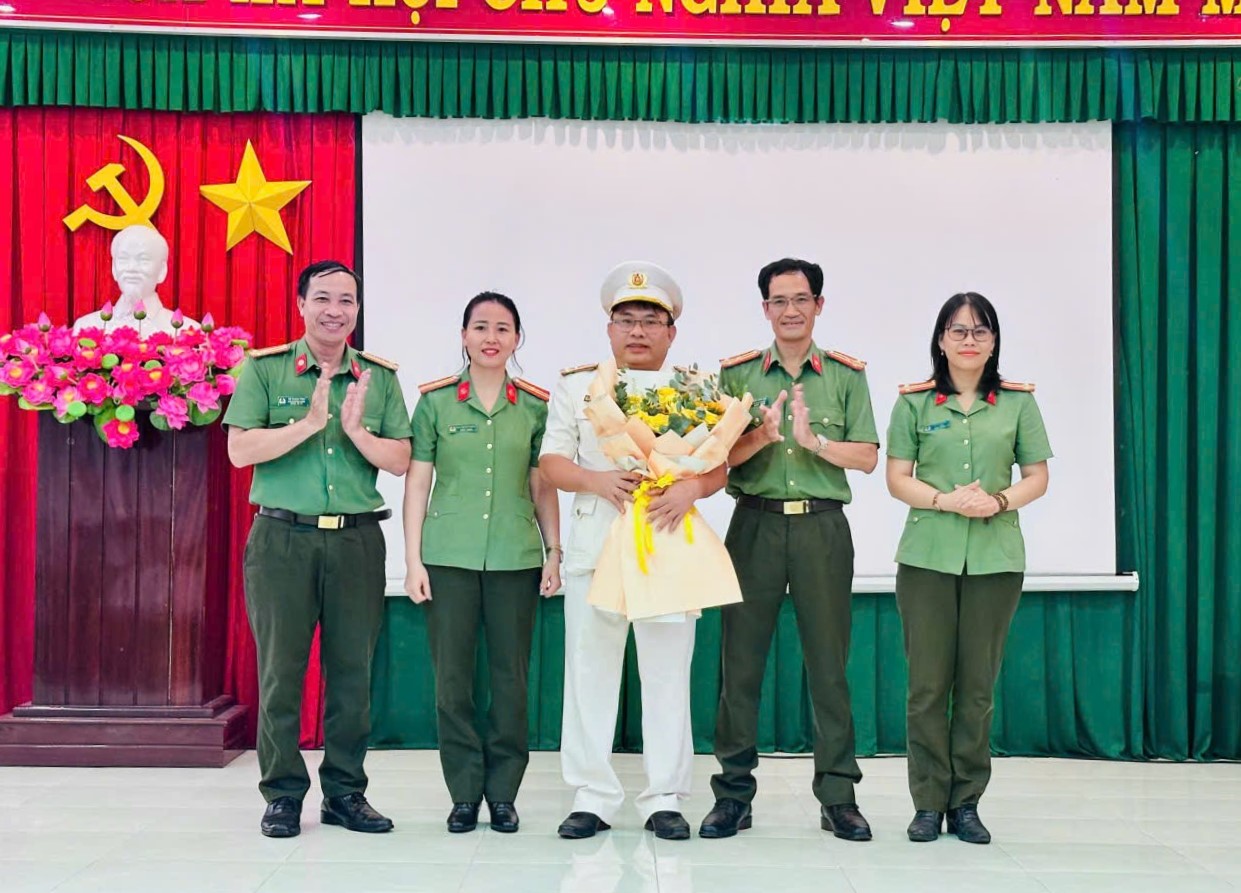 Đồng chí Thượng tá Đinh Văn Bình, Trưởng Phòng Tổ chức cán bộ tặng hoa chúc mừng, giao nhiệm vụ cho đồng chí Thượng tá Nguyễn Văn Hùng. Thời gian tới yêu cầu đồng chí tiếp tục phát huy phẩm chất, năng lực, tinh thần trách nhiệm, chủ động triển khai hiệu quả các mặt công tác, góp phần xây dựng tập thể Công an xã đoàn kết, vững mạnh, hoàn thành xuất sắc mọi nhiệm vụ được giao.