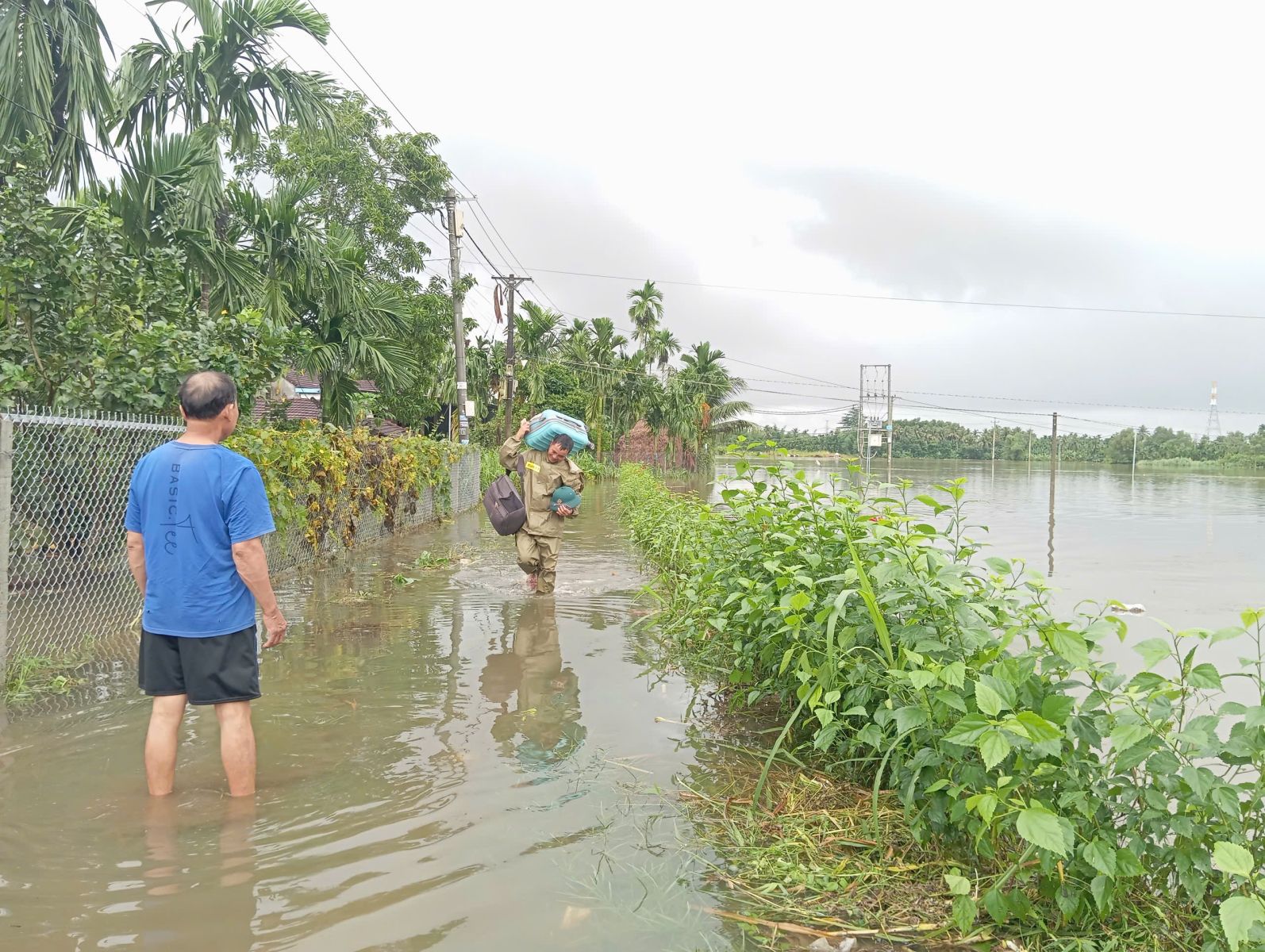 Trước tình hình mưa lớn kéo dài, nước lũ dâng cao chia cắt nhiều tuyến đường, lực lượng an ninh cơ sở thôn Long Bàn Nam, xã Phước Giang đã kịp thời tổ chức phương tiện, phối hợp với người dân hỗ trợ một sản phụ vượt qua vùng ngập sâu đến cơ sở y tế an toàn, thể hiện tinh thần “vì Nhân dân phục vụ” giữa lúc thiên tai hoành hành.