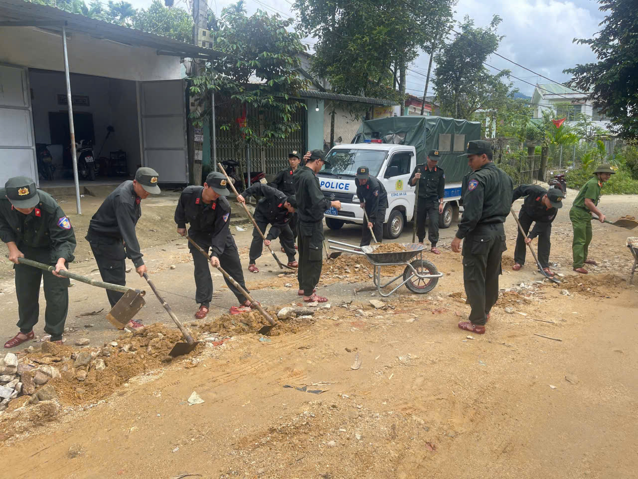 Hình ảnh những người chiến sĩ lấm lem bùn đất nhưng luôn nở nụ cười, cần mẫn cùng Nhân dân thu dọn đất đá, gia cố nền đường, san phẳng những điểm sạt lở... đã trở nên quen thuộc trong những ngày qua. Ở nhiều điểm, lực lượng Công an phải vượt qua các đoạn đường ngập sâu, mang vác từng bao cát, từng tấm ván để khắc phục tạm thời, bảo đảm giao thông thông suốt.