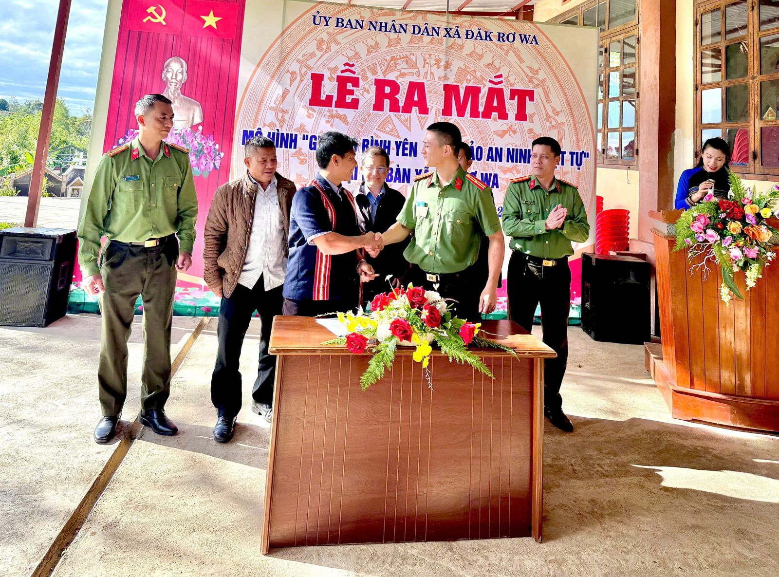 Tại buổi Lễ ra mắt, các ban, ngành, đoàn thể cấp xã và đại diện Giáo họ đã đăng kí thi đua làm nhiều việc tốt về ANTT và thực hiện các tiêu chí xây dựng mô hình “Giáo họ bình yên - đảm bảo ANTT”; Công an xã và Giáo họ cũng tổ chức ký kết Quy chế phối hợp đảm bảo ANTT giữa Công an xã và Giáo họ Đăk Rơ Wa nhằm xác định rõ vai trò, trách nhiệm trong đảm bảo ANTT góp phần xây dựng thôn, làng bình yên. Đồng thời, thay mặt Đảng ủy xã, đồng chí Bí thư Đảng ủy trao tặng những phần quà đến Giáo họ cũng như thành viên tham gia Mô hình.
