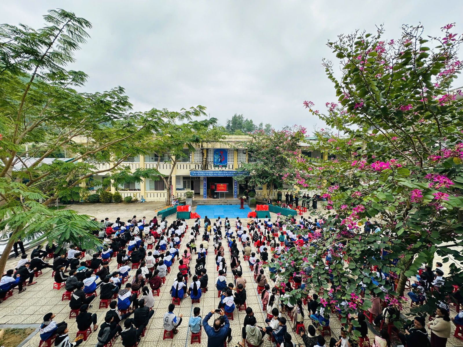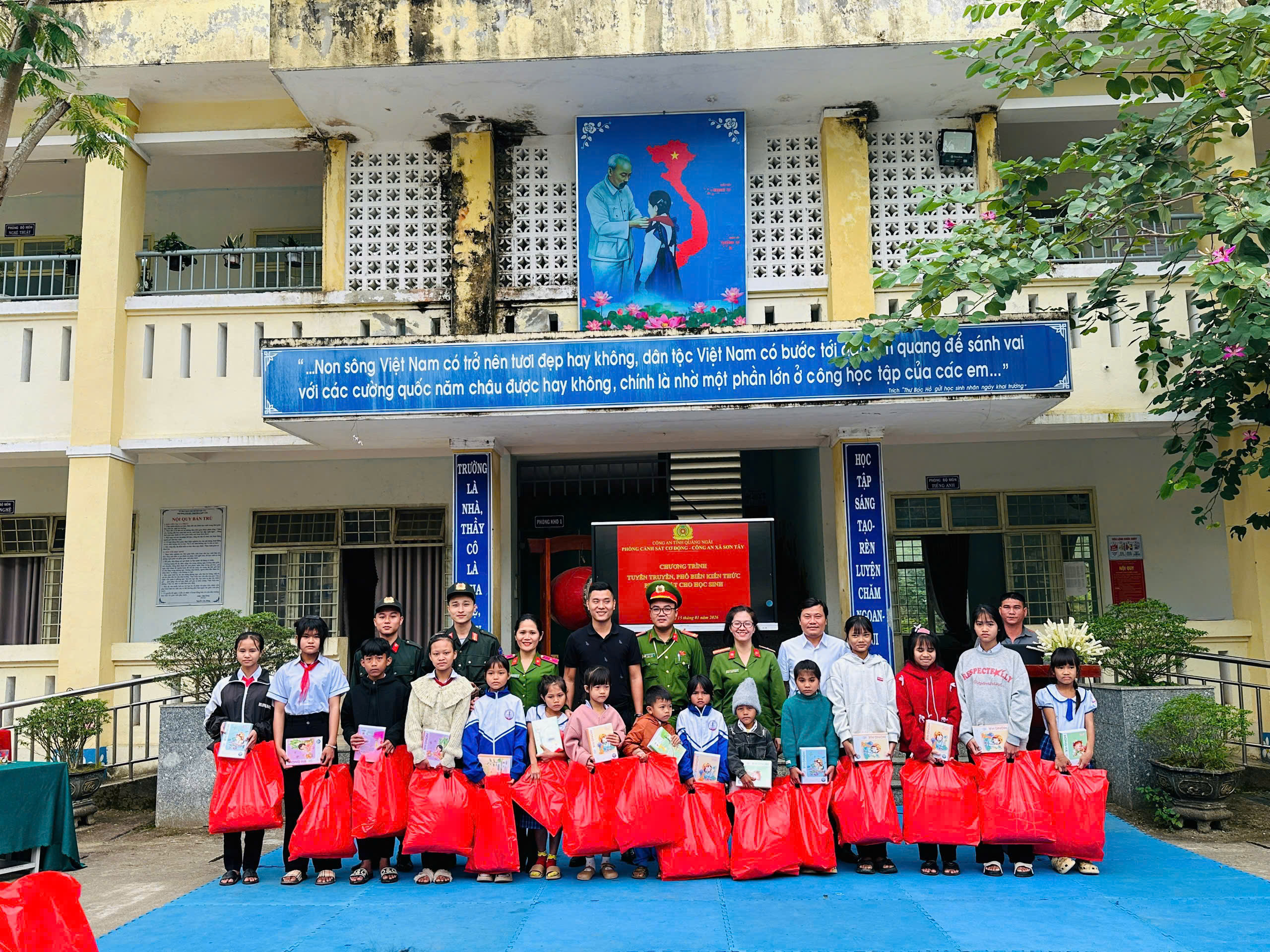 Nhằm nâng cao nhận thức, ý thức chấp hành pháp luật cho học sinh, góp phần xây dựng môi trường học đường an toàn, lành mạnh, sáng ngày 15/01/2026, Phòng Cảnh sát cơ động Công an tỉnh Quảng Ngãi phối hợp với Công an xã Sơn Tây tổ chức buổi tuyên truyền, phổ biến, giáo dục pháp luật tại Trường Phổ thông Dân tộc Bán trú Tiểu học và Trung học cơ sở Sơn Tân.