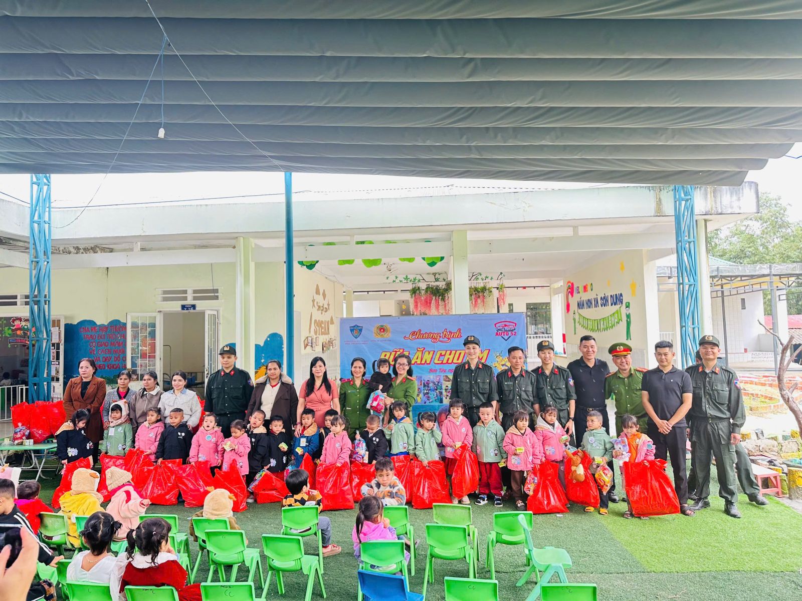 Phòng Cảnh sát cơ động Công an tỉnh phối hợp với Công an xã Sơn Tây và các mạnh thường quân tổ chức chương trình thiện nguyện “Bữa ăn cho em” tại Trường Mầm non Sơn Dung.