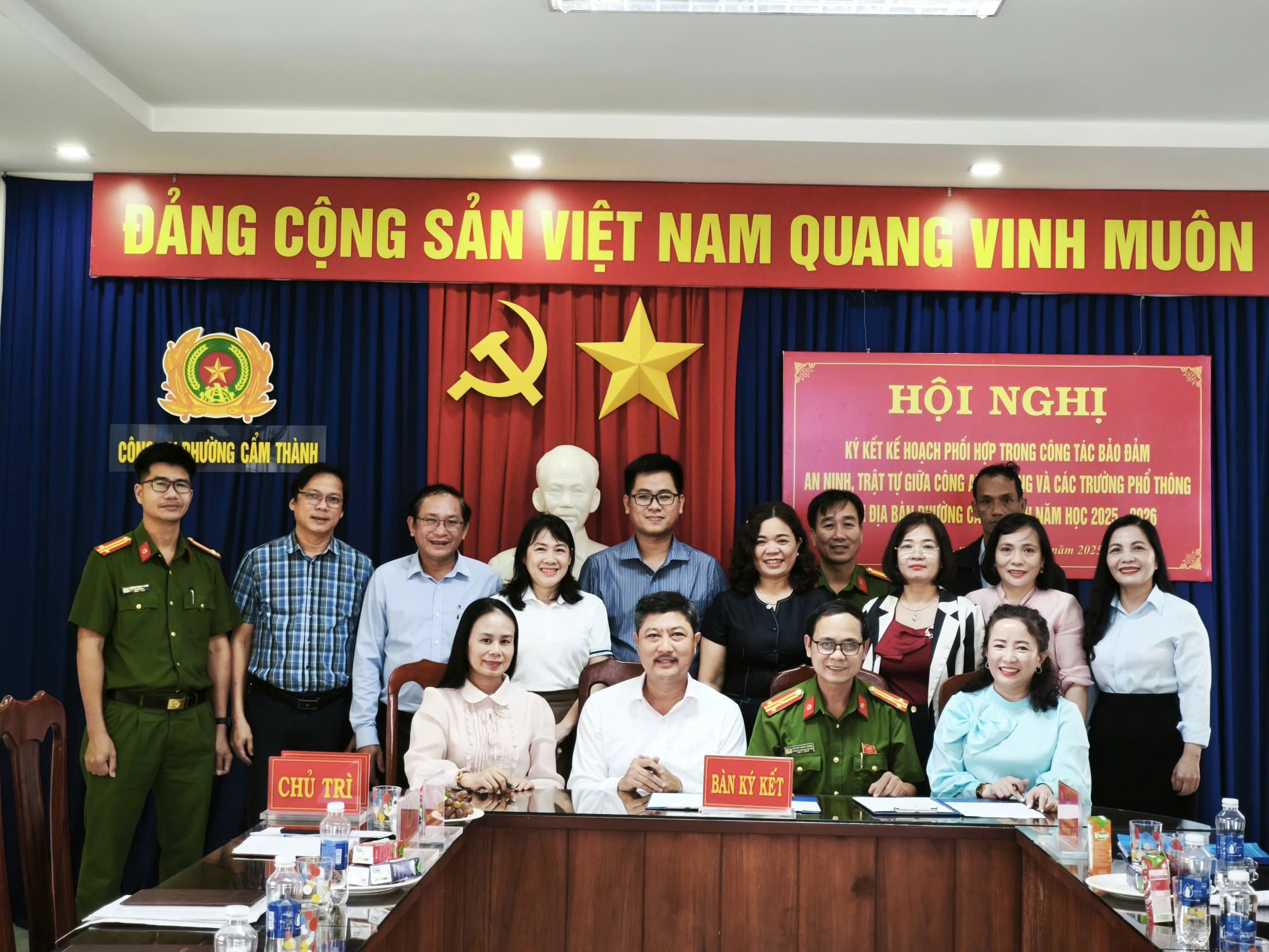 Kết thúc chương trình, đại diện lãnh đạo Công an phường Cẩm Thành và các trường học trên địa bàn đã ký kết kế hoạch phối hợp công tác, thể hiện tinh thần đoàn kết, thống nhất, chung tay vì mục tiêu “An ninh học đường - Nền tảng vững chắc cho giáo dục toàn diện”.