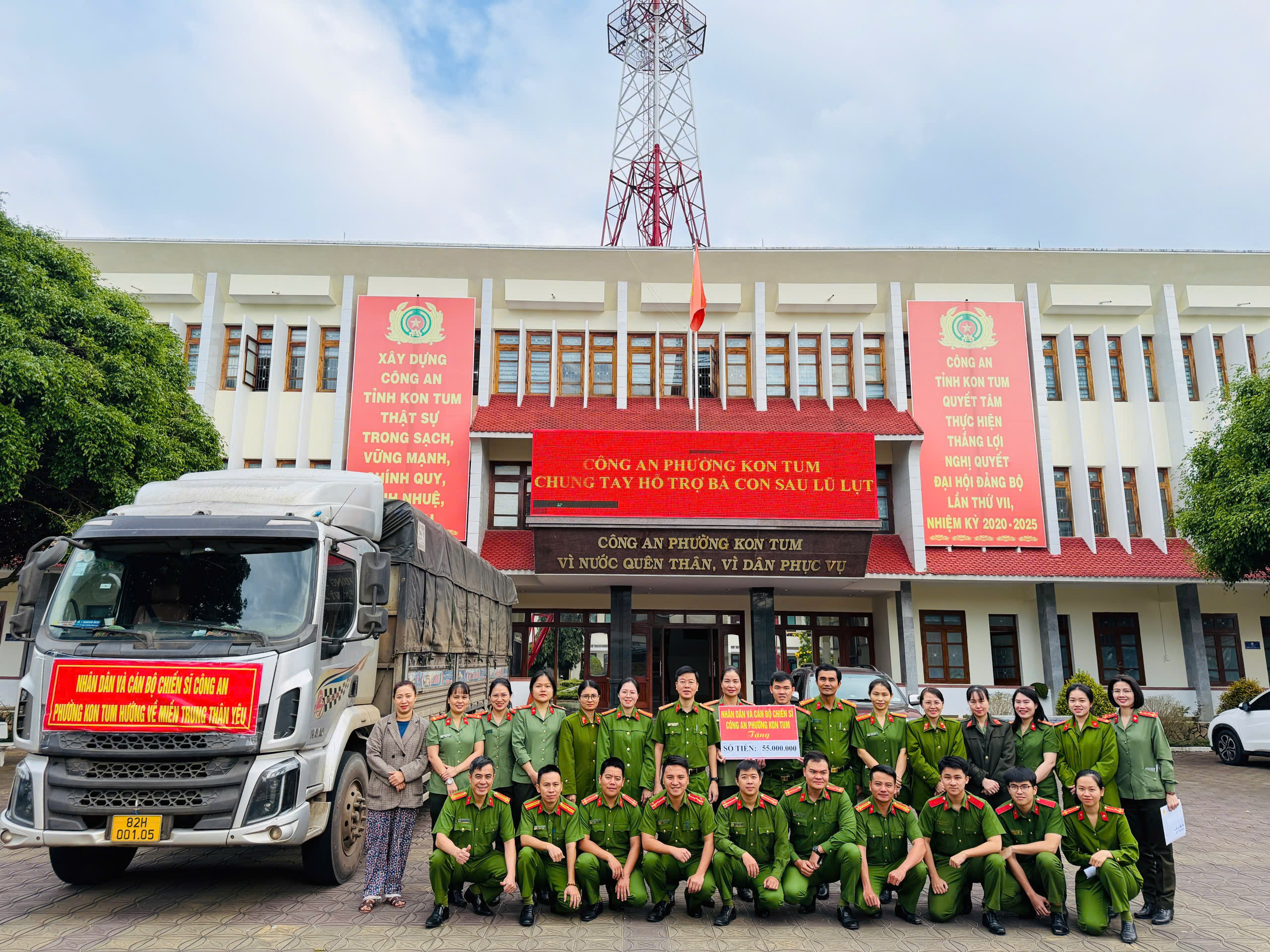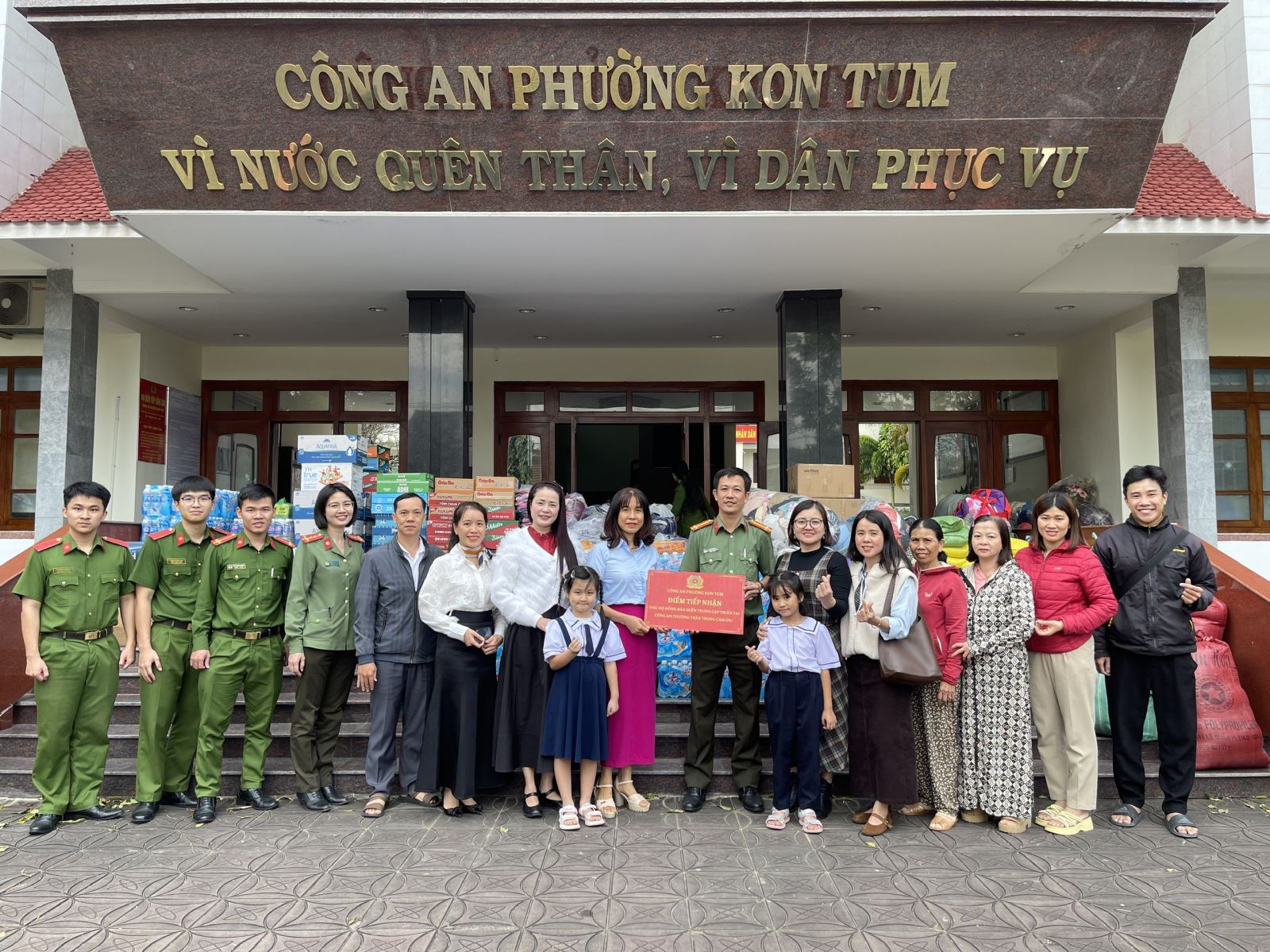Thông qua chương trình, bà con Nhân dân và cán bộ chiến sĩ Công an phường Kon Tum đã quyên góp và chuyển tới người dân vùng lũ các phần quà thiết thực gồm: 55 triệu đồng tiền mặt, 1 tấn gạo, 104 thùng mì tôm các loại, 400 thùng nước, hơn 1000 cuốn tập học sinh, 1000 cây bút các loại, 50 thùng sữa, 200 cặp học sinh, quần áo các loại, chăn mền và một số vật dụng thiết yếu khác.