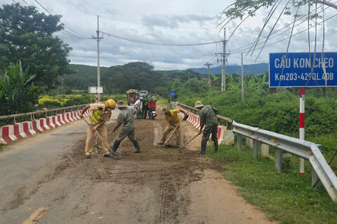 Chiều ngày 25/10/2025, trong quá trình tuần tra, kiểm soát trên tuyến Quốc lộ 40B, đoạn qua xã Kon Đào, tỉnh Quảng Ngãi, tổ công tác Đội Cảnh sát giao thông đường bộ số 2 – Khu vực 2 phát hiện một đoạn đường dài bị đất đá, bùn lầy tràn qua mặt đường sau mưa lớn, gây cản trở giao thông và tiềm ẩn nguy cơ tai nạn cho người đi đường.