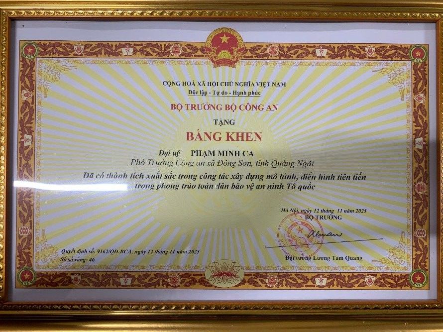 Đối với tỉnh Quảng Ngãi, phong trào Toàn dân bảo vệ an ninh Tổ quốc thời gian qua được triển khai sâu rộng dưới sự lãnh đạo của cấp ủy, chính quyền các cấp và vai trò nòng cốt của lực lượng Công an. Nhiều mô hình hiệu quả, thiết thực đã nhận được sự đồng thuận, tham gia tích cực của Nhân dân. Tại Hội nghị, tỉnh Quảng Ngãi có hai mô hình tiêu biểu được Bộ trưởng Bộ Công an biểu dương, khen thưởng, gồm mô hình “Tiếng loa bình yên” tại xã Đông Sơn và mô hình “Giáo xứ bình yên – đảm bảo an ninh trật tự” tại xã Đăk Pxi. Cùng với đó, tập thể Công an xã Đăk Pxi và Đại úy Phan Minh Ca – Phó Trưởng Công an xã Đông Sơn – được Bộ trưởng Bộ Công an tặng Bằng khen vì đã có thành tích xuất sắc trong triển khai, vận hành các mô hình tại cơ sở.