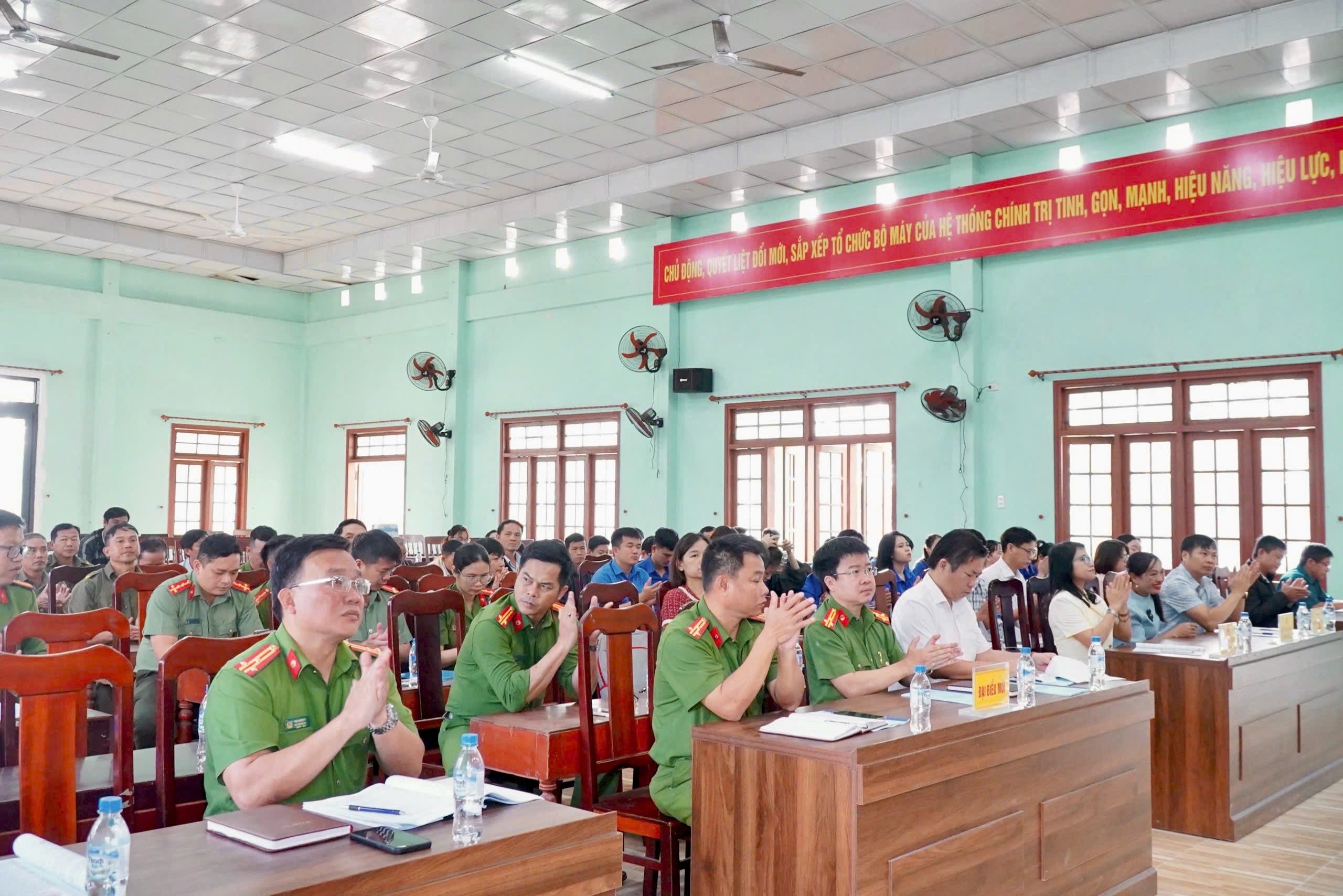 Đến dự, về phía Công an tỉnh, có đồng chí Thượng tá Hồ Văn Thảo - Phó trưởng Phòng Cảnh sát điều tra tội phạm về ma tuý; đồng chí Thượng tá Võ Quang Huy - Phó trưởng Phòng Cảnh sát quản lý hành chính về trật tự xã hội cùng đại diện lãnh đạo Ban Quản lý Khu kinh tế Dung Quất và các Khu công nghiệp tỉnh Quảng Ngãi. Về phía xã, có đồng chí Huỳnh Thị Sương - Bí thư Đảng ủy, Chủ tịch HĐND xã. Đồng chí Trương Công Hòa - Phó Bí thư Đảng ủy, Chủ tịch UBND xã; đồng chí Thượng tá Trần Hồng Thái - Trưởng Công an xã chủ trì Hội nghị.