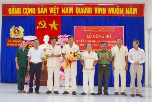 Chi hội Cựu CAND xã Bình Sơn được thành lập trên cơ sở sáp nhập 7 Chi hội Cựu CAND xã cũ, với tổng số 57 hội viên. Ban Chấp hành Chi hội gồm 6 đồng chí, trong đó Đại tá Dương Văn A - nguyên Phó Trưởng Công an huyện Bình Sơn làm Chi hội trưởng. Tại buổi lễ, Chi hội đã thông qua phân công nhiệm vụ và phương hướng hoạt động nhiệm kỳ đầu tiên, Kế hoạch phối hợp với Công an xã trong bảo đảm ANTT trên địa bàn xã; thể hiện tinh thần đoàn kết, trách nhiệm và quyết tâm tiếp tục phát huy truyền thống vẻ vang của lực lượng CAND, đóng góp kinh nghiệm vào sự nghiệp giữ gìn an ninh, trật tự ở cơ sở.
