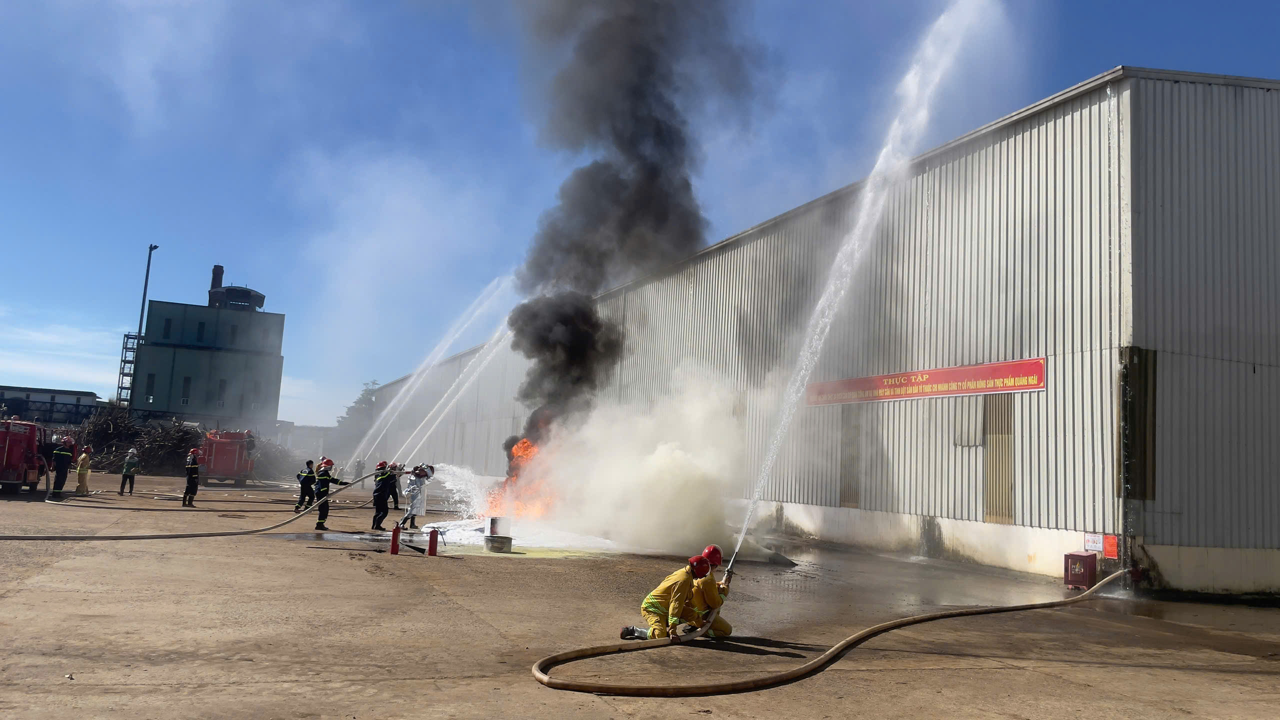 Tình huống giả định trong buổi thực tập là xảy ra cháy tại khu vực Kho chứa sắn khô 1,2,3 của Nhà máy. Công tác CC và CNCH đã được triển khai nhanh chóng, hiệu quả, đảm bảo an toàn về người và phương tiện theo Kế hoạch đề ra. Các thành viên đội PCCC cơ sở đã phối hợp với lực lượng Cảnh sát PCCC và CNCH tổ chức thực hành CC và CNCH thành thạo đảm bảo quy trình.