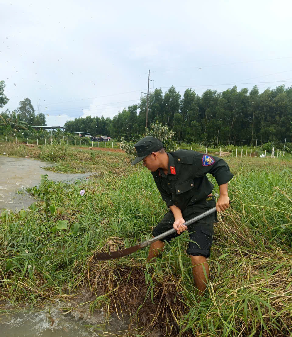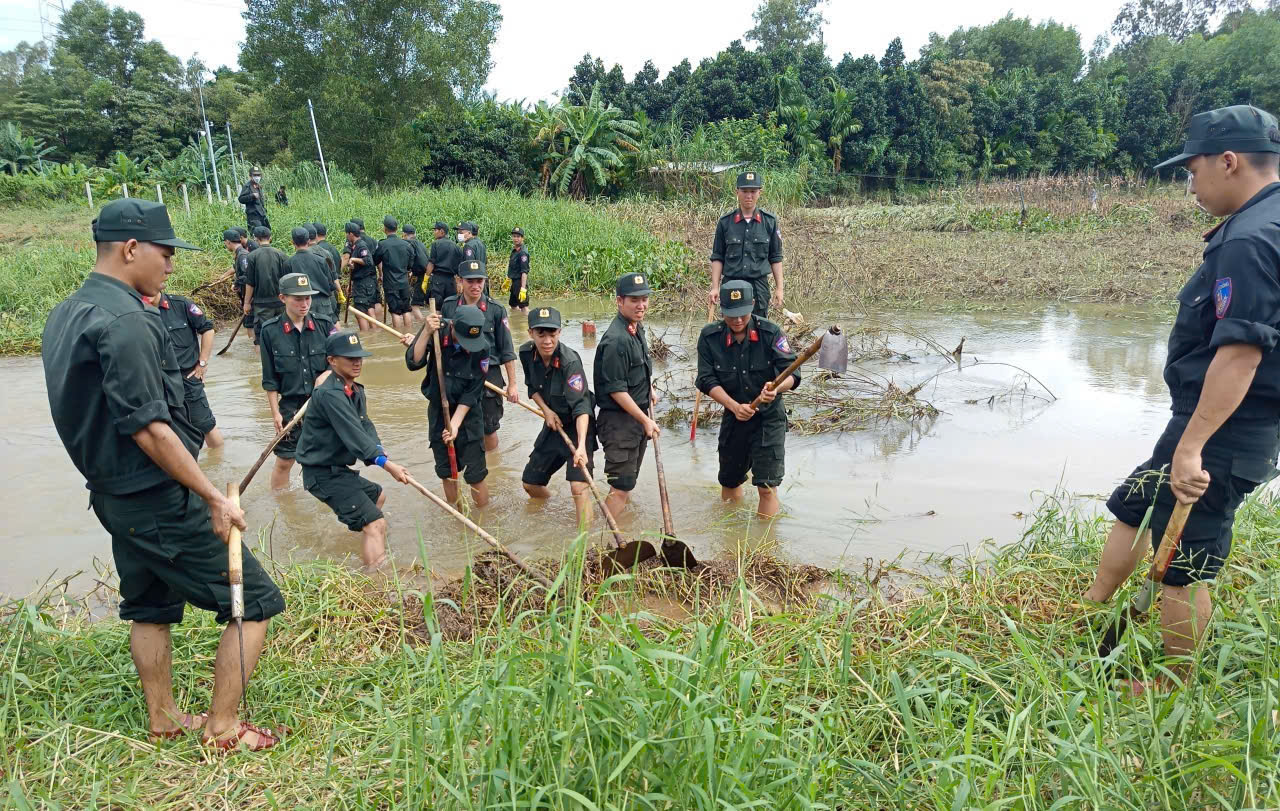Chiều ngày 31/10/2025, Đoàn công tác do đồng chí Thượng tá Nguyễn Thế Dũng, Phó Trung Đoàn Trưởng Trung Đoàn CSCĐ Nam Trung Bộ làm Trưởng Đoàn, cùng với 50 cán bộ, chiến sỹ của Trung đoàn đã khẩn trương ra quân phối hợp cùng bà con Nhân dân và các lực lượng địa phương khắc phục hậu quả mưa lũ, khơi thông dòng chảy tại thôn Phong Niên Hạ, xã Thọ Phong.