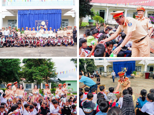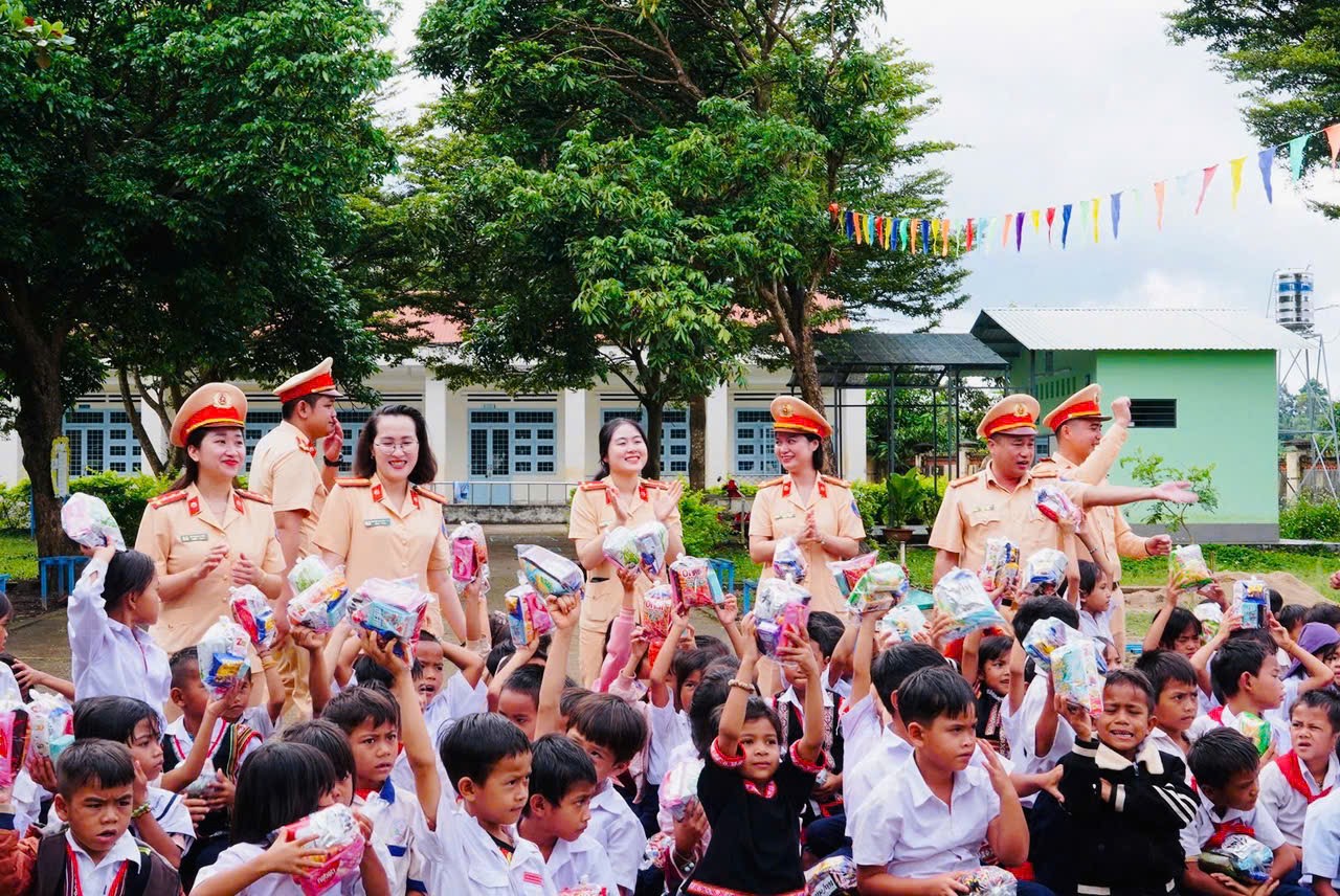 Sáng ngày 6/10/2025, Hội Phụ nữ phối hợp Đoàn Thanh niên Phòng Cảnh sát giao thông tổ chức đoàn đến thăm và tặng quà cho 400 em thiếu nhi tại Trường Tiểu học Kim Đồng (thôn Klâu Ngol Ngó, xã Ia Chim).
