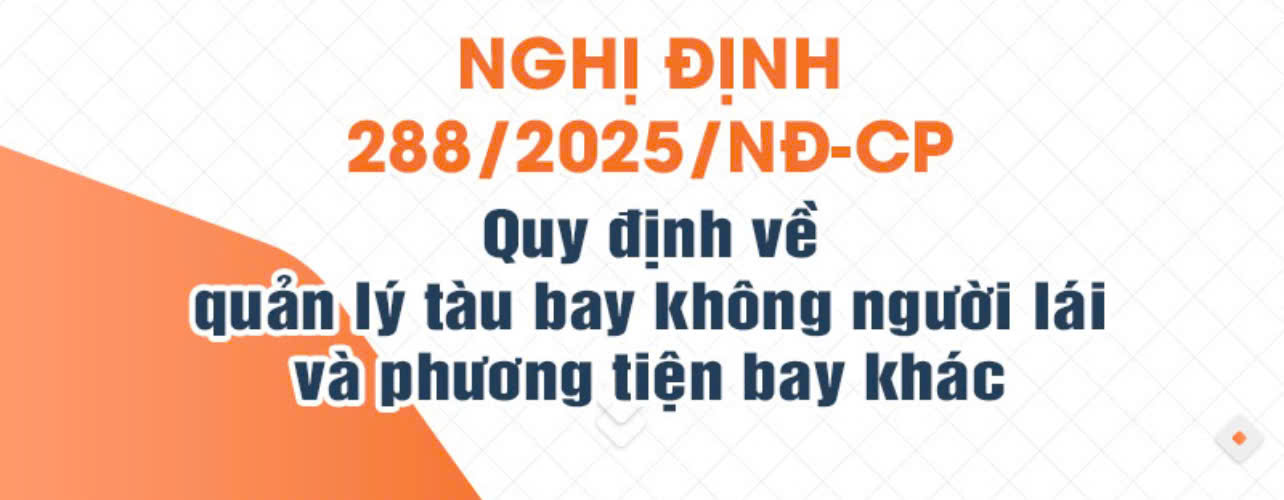 Ngày 05 tháng 11 năm 2025, Chính phủ đã ban hành Nghị định số 288/2025/NĐ-CP quy định về quản lý tàu bay không người lái và các phương tiện bay khác. Nghị định được ban hành nhằm bảo đảm an toàn bầu trời, giữ vững an ninh quốc gia, trật tự an toàn xã hội, đồng thời tạo điều kiện ứng dụng thiết bị bay vào sản xuất nông nghiệp, thương mại, du lịch, cứu hộ cứu nạn và nhiều hoạt động phục vụ đời sống nhân dân.