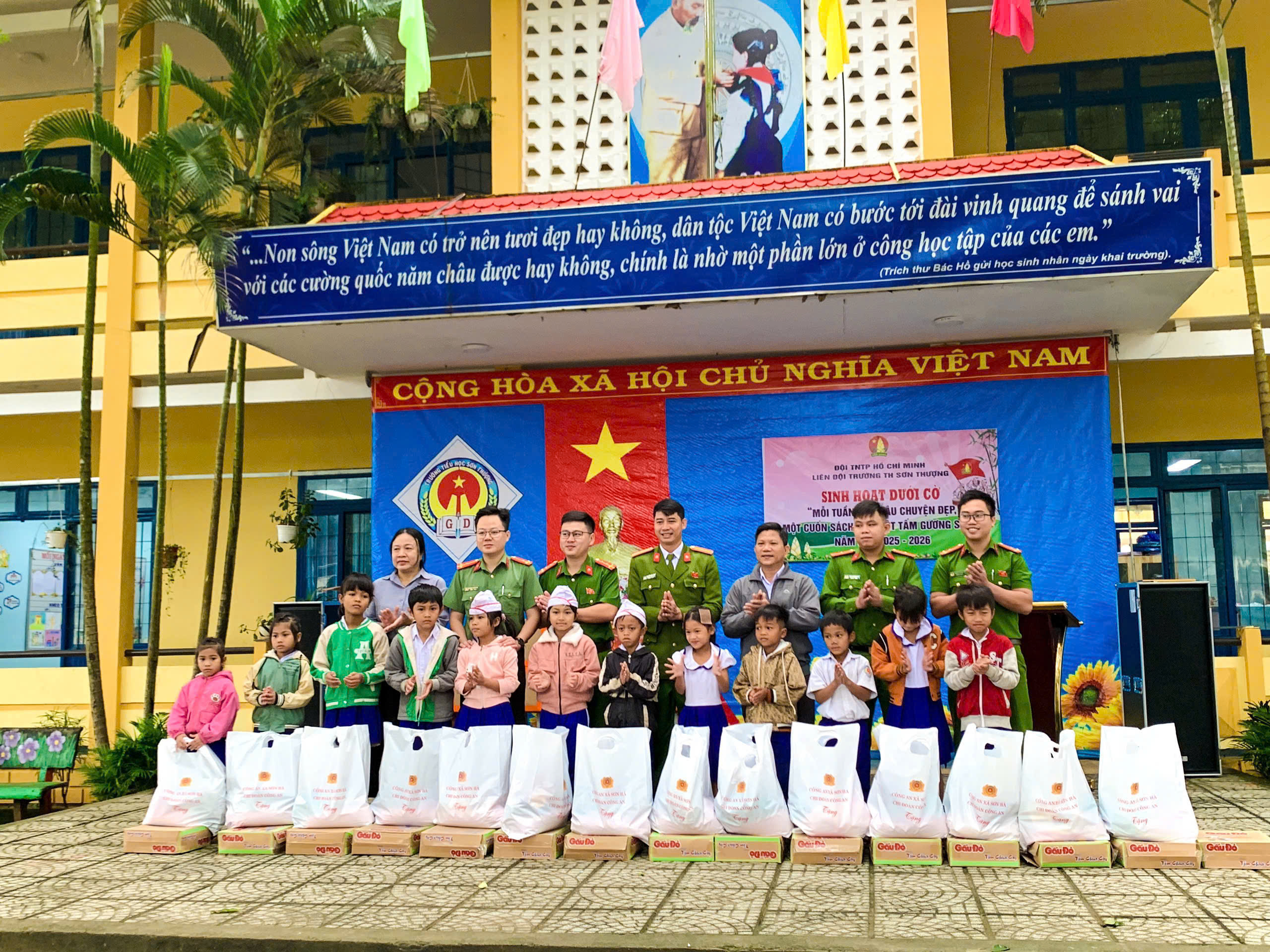 Trước đó, chương trình đã được triển khai và trao tặng áo ấm, quà cho học sinh tại các Trường Tiểu học và Mầm non Sơn Bao, để lại nhiều tình cảm tốt đẹp và sự lan tỏa tích cực trong cộng đồng. Phát huy hiệu quả đó, trong đợt trao tặng lần thứ hai, Chi đoàn Công an xã Sơn Hà đã trao 150 áo ấm cùng 15 suất quà gồm lương thực, thực phẩm thiết yếu cho các em học sinh có hoàn cảnh khó khăn tại Trường Tiểu học Sơn Thượng, với tổng kinh phí hơn 30 triệu đồng.