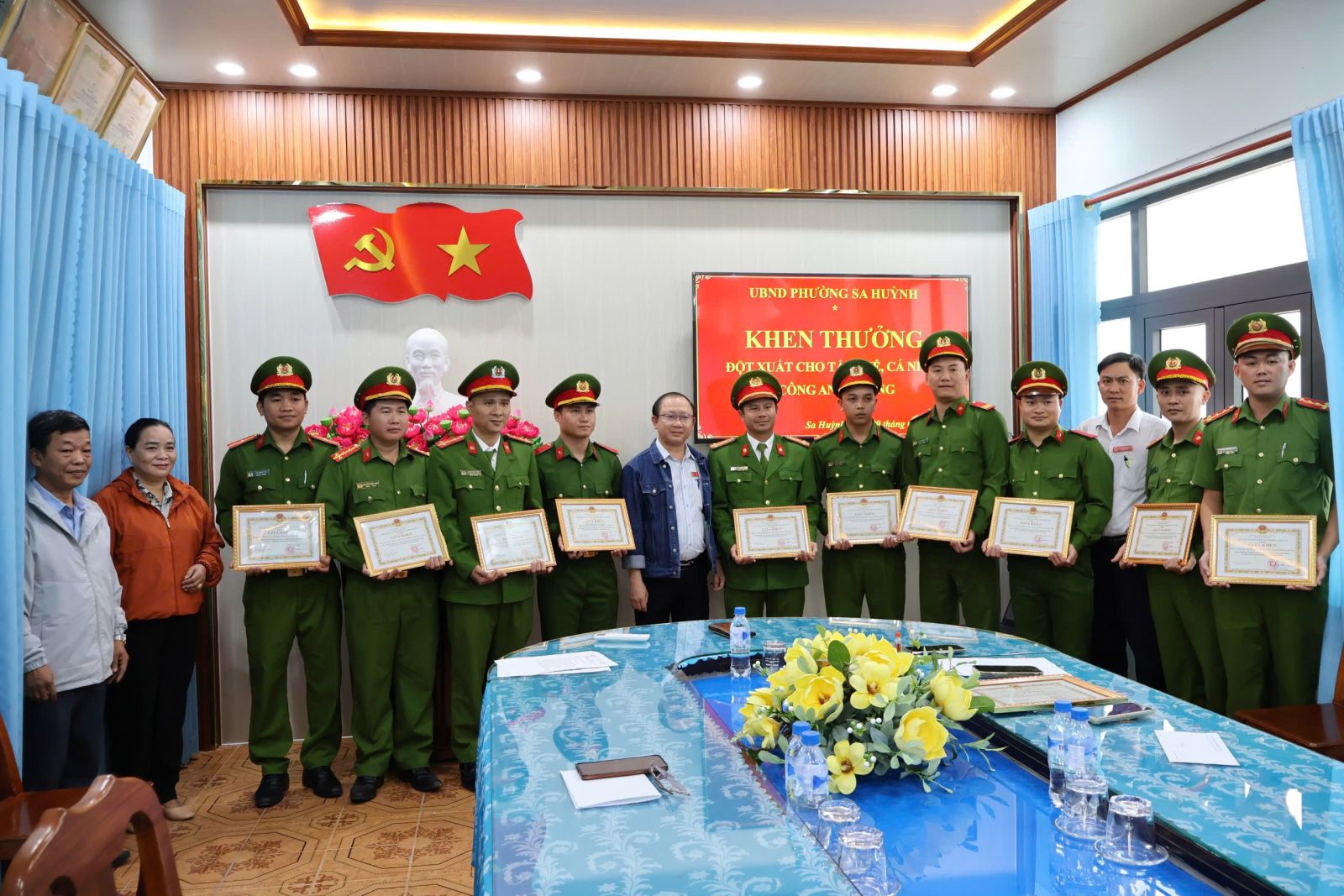 Để kịp thời ghi nhận và biểu dương thành tích xuất sắc trong công tác đấu tranh, phòng chống tội phạm trên địa bàn, Đảng ủy, UBND phường Sa Huỳnh tổ chức khen thưởng đột xuất và trao giấy khen cho 01 tập thể, 12 cá nhân cho cán bộ chiến sĩ Công an phường Sa Huỳnh đã có thành tích xuất sắc trong đấu tranh phòng chống tội phạm ma túy trên địa bàn phường.